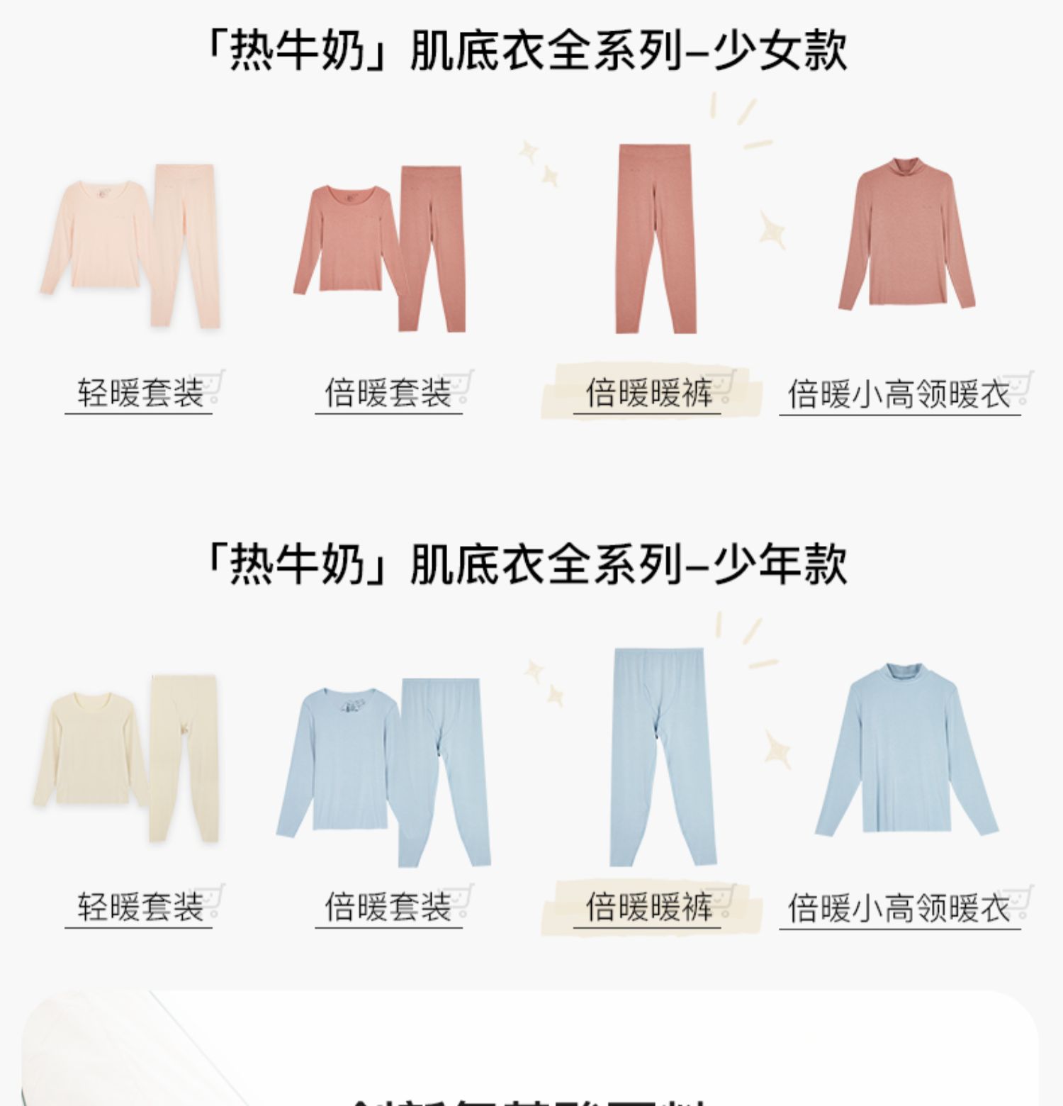 【自播秒杀】likeuu男女童倍暖秋衣秋裤立领肌底衣中大童秋冬保暖