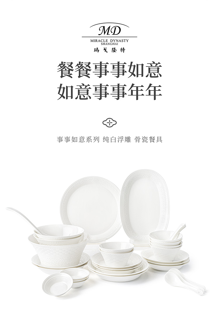 【玛戈隆特】事事如意骨瓷餐具4人碗碟家用送礼套装