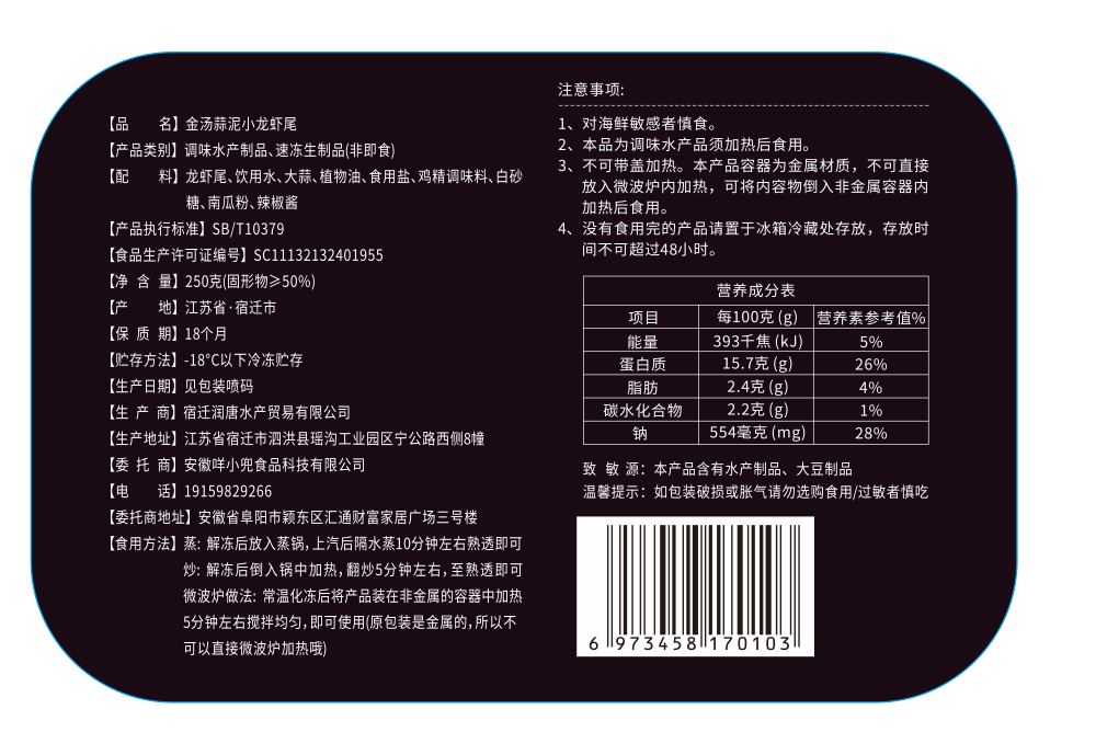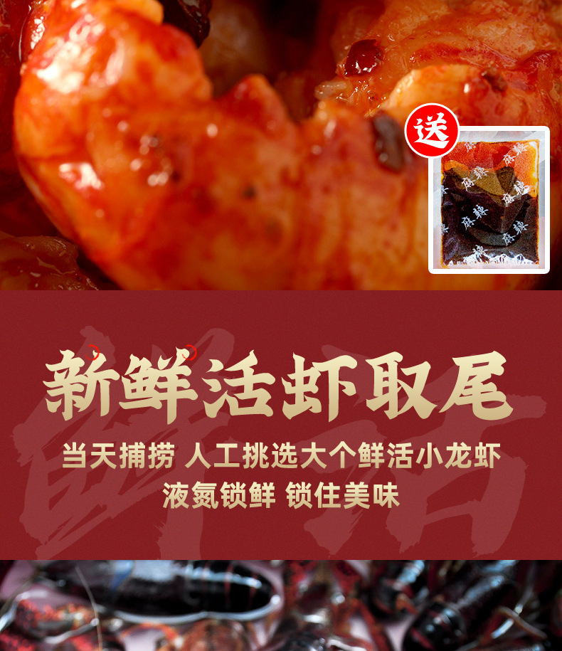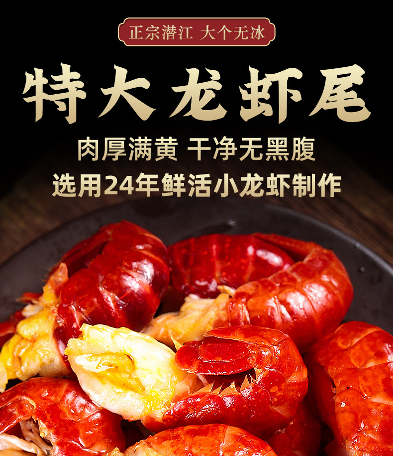 【新鲜美味,肉质饱满】香辣龙虾尾 250g小龙虾尾 加热即食半成品 无沙冷冻休闲食品-QQ