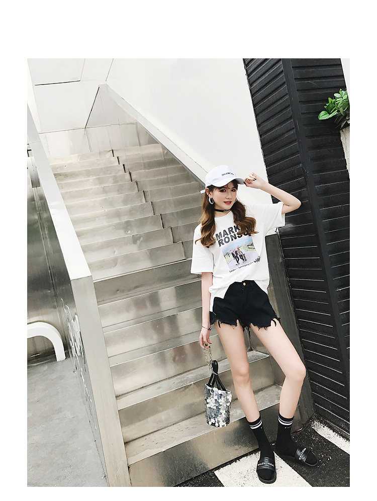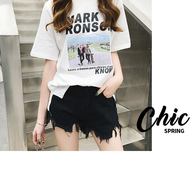 JYS-夏装胖妹妹mm流苏时髦减龄显瘦短款牛仔裤