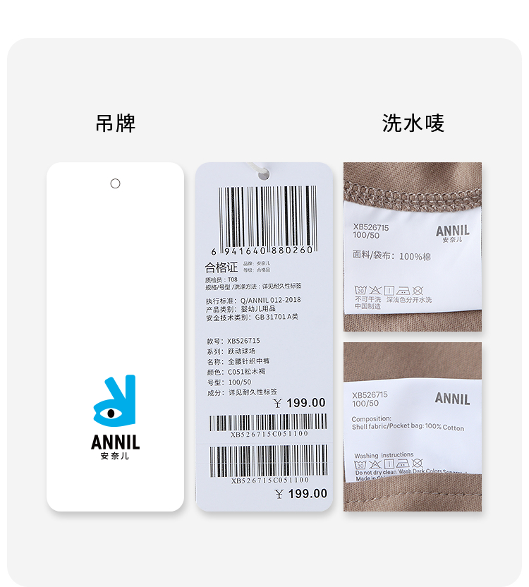 【实体店同款】男童全腰针织中裤夏季新款安奈儿童装XB526715