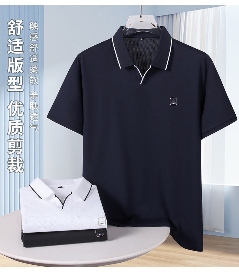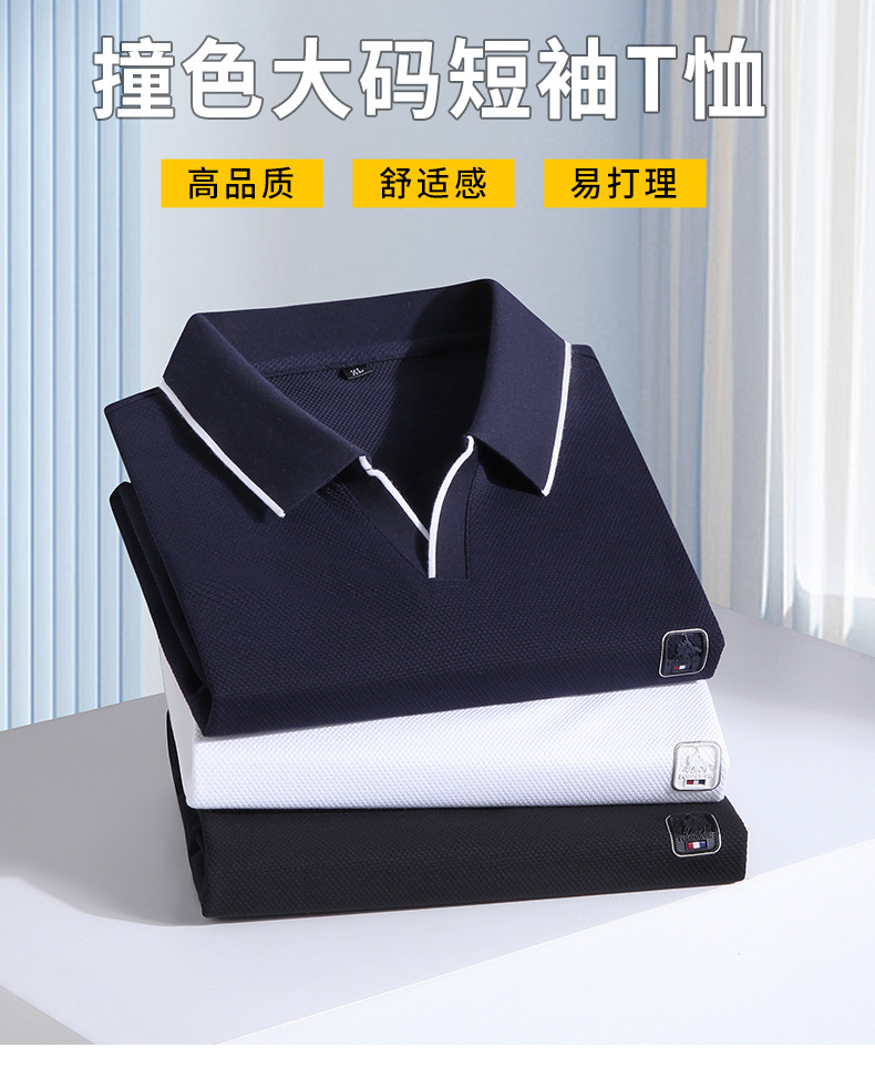 【棉质】【DK】大依优型大码短袖POLO衫小V领胖子宽松大码剪刀领棉质半袖体恤打底衫男加大