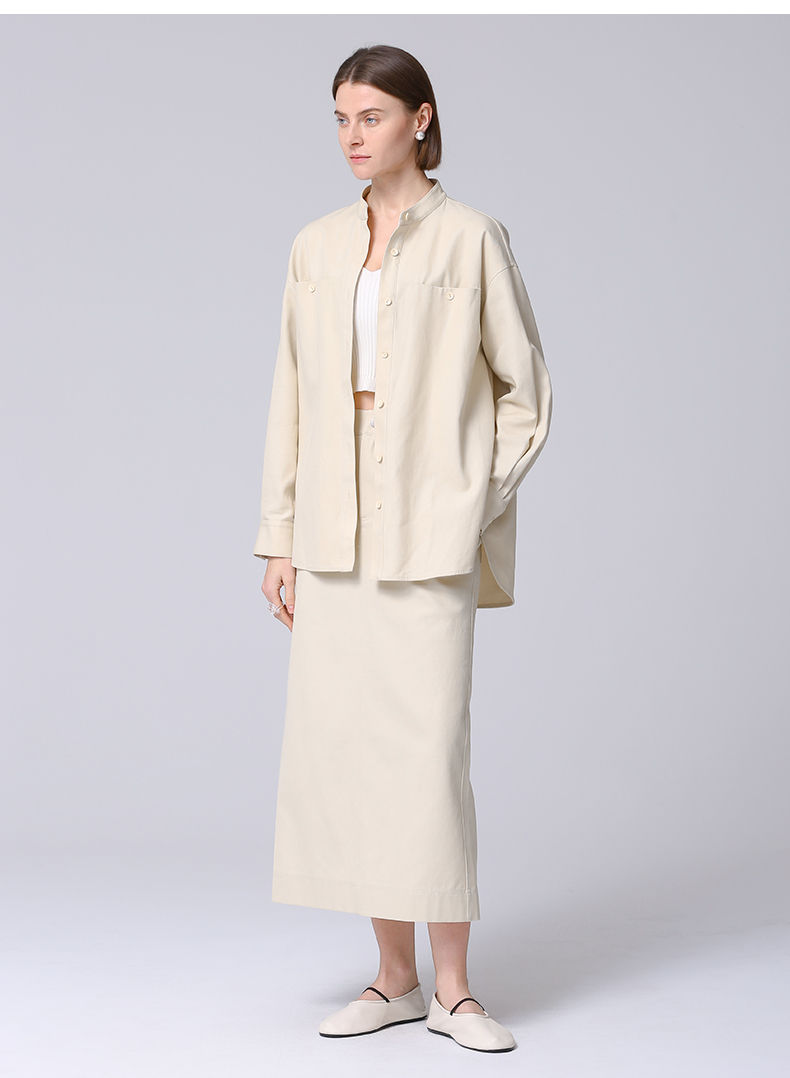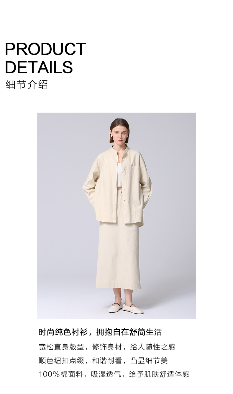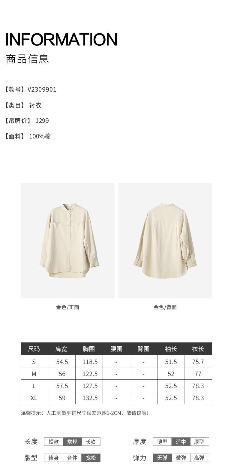 VIMAGE纬漫纪气质高级感通勤宽松显瘦圆领纯棉衬衫上衣2025春新款V2309901