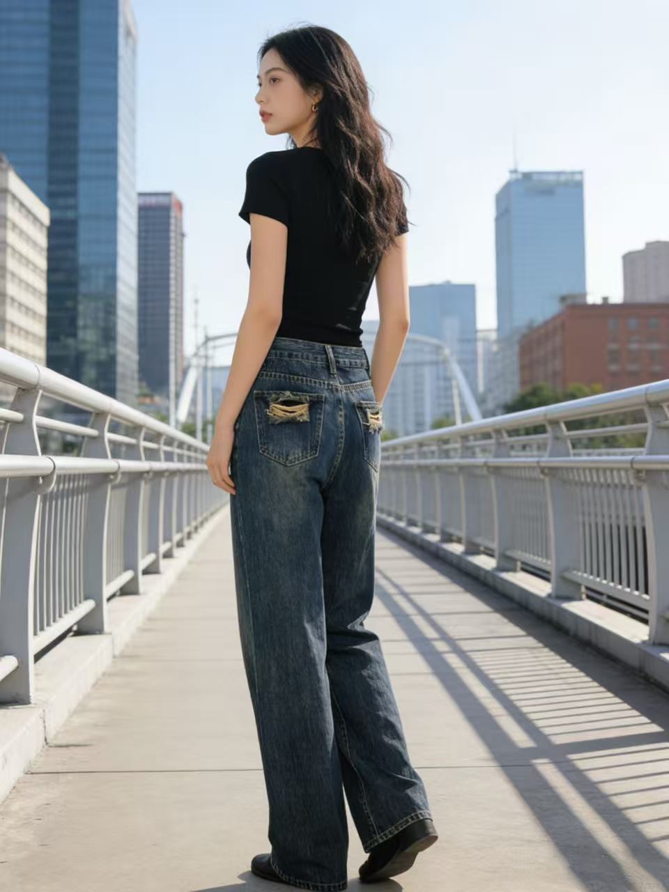 418良粉节|2026 活动爆款 软料牛仔【自营】衣周期 8835(80%棉)薄款窄版直筒长款后口袋破洞牛仔裤-喜出
