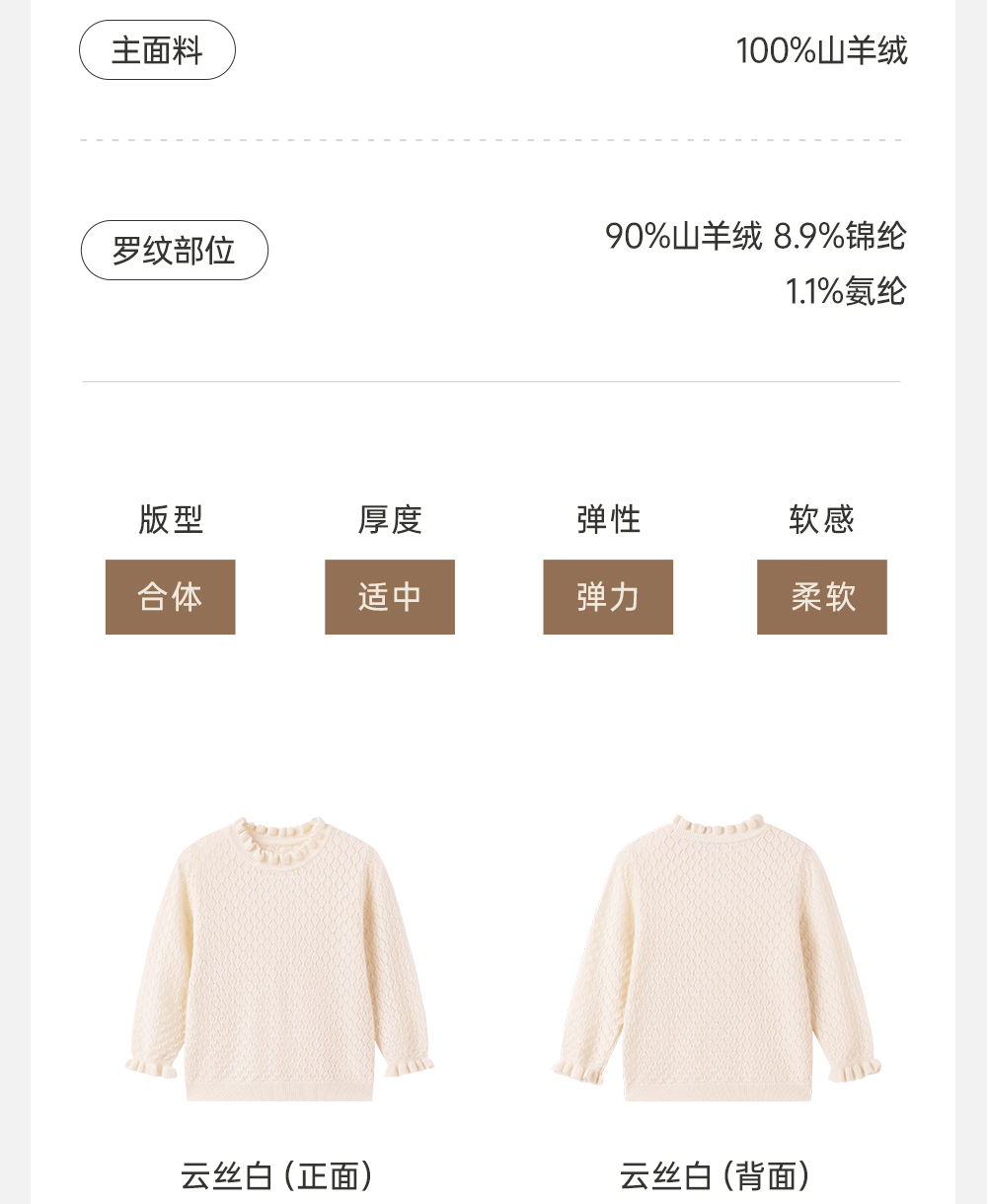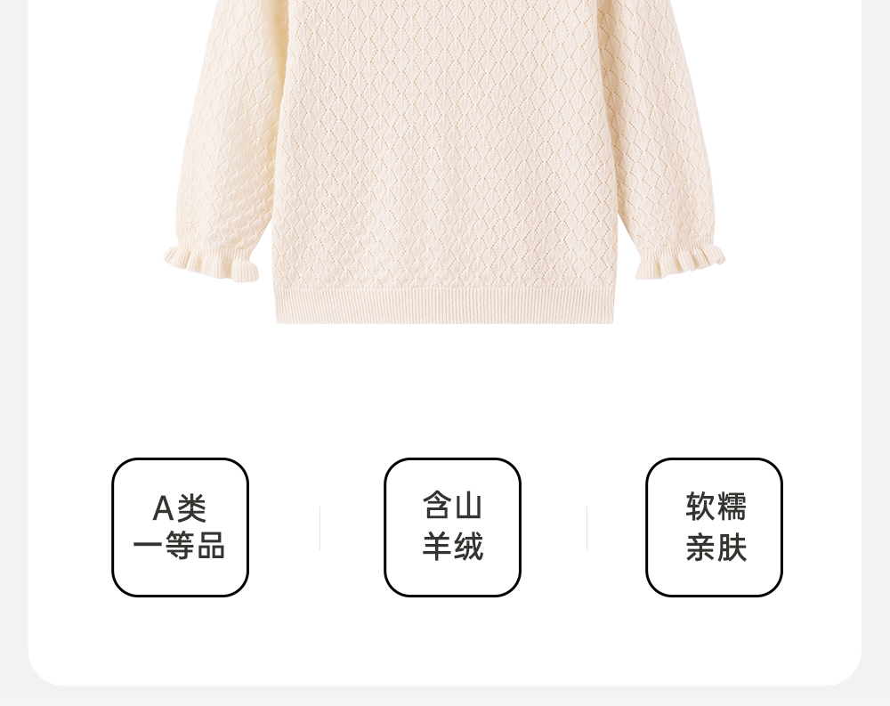 【高定系列】英氏儿童毛衣针织衫秋季女童纯色打底羊绒套头衫新款