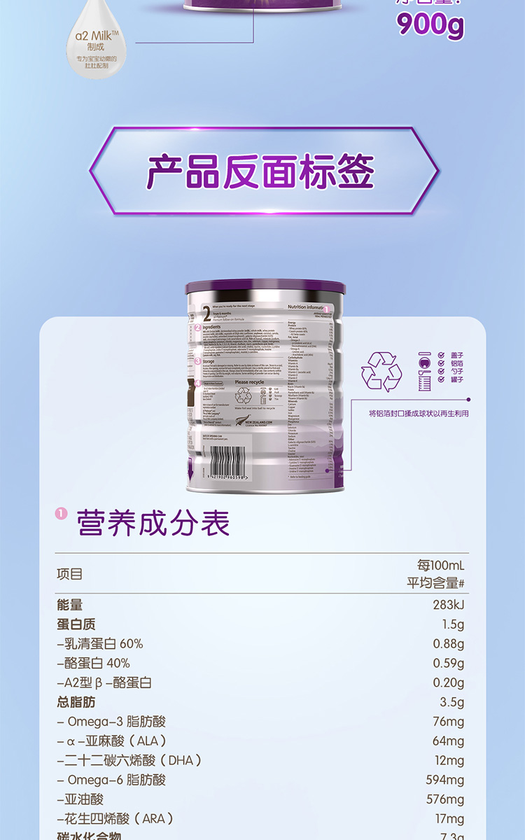 澳洲A2婴幼儿配方奶粉1段900g(适合0-6个月)