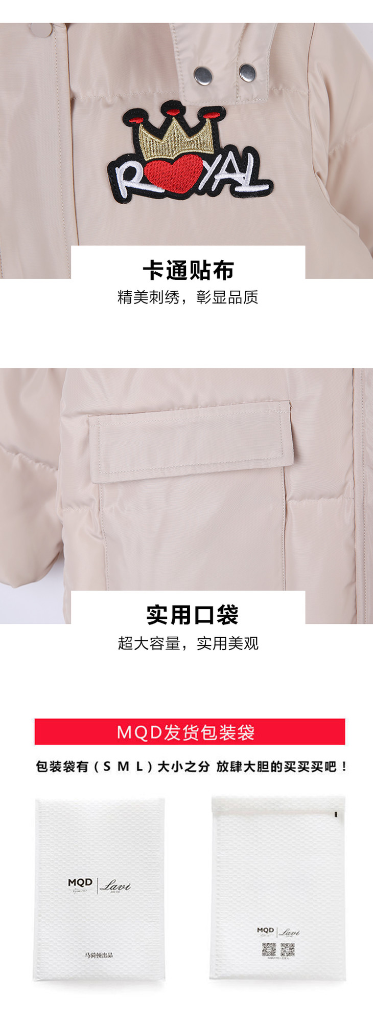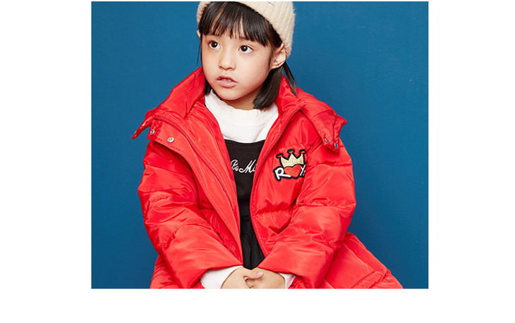 MQD女童冬季甜美皇冠字母中长羽绒服