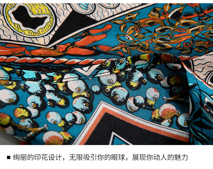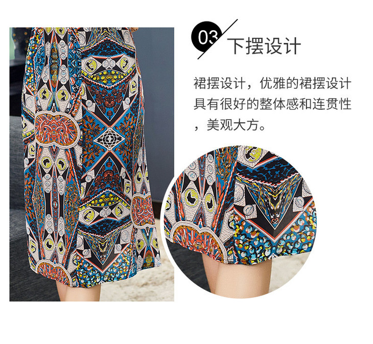 QY MY13058真丝宽松连衣裙复古中长款印花桑蚕丝