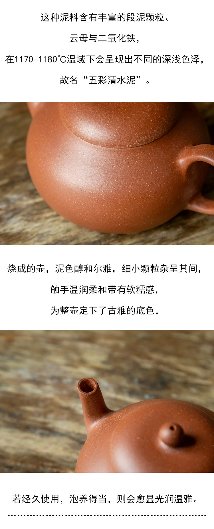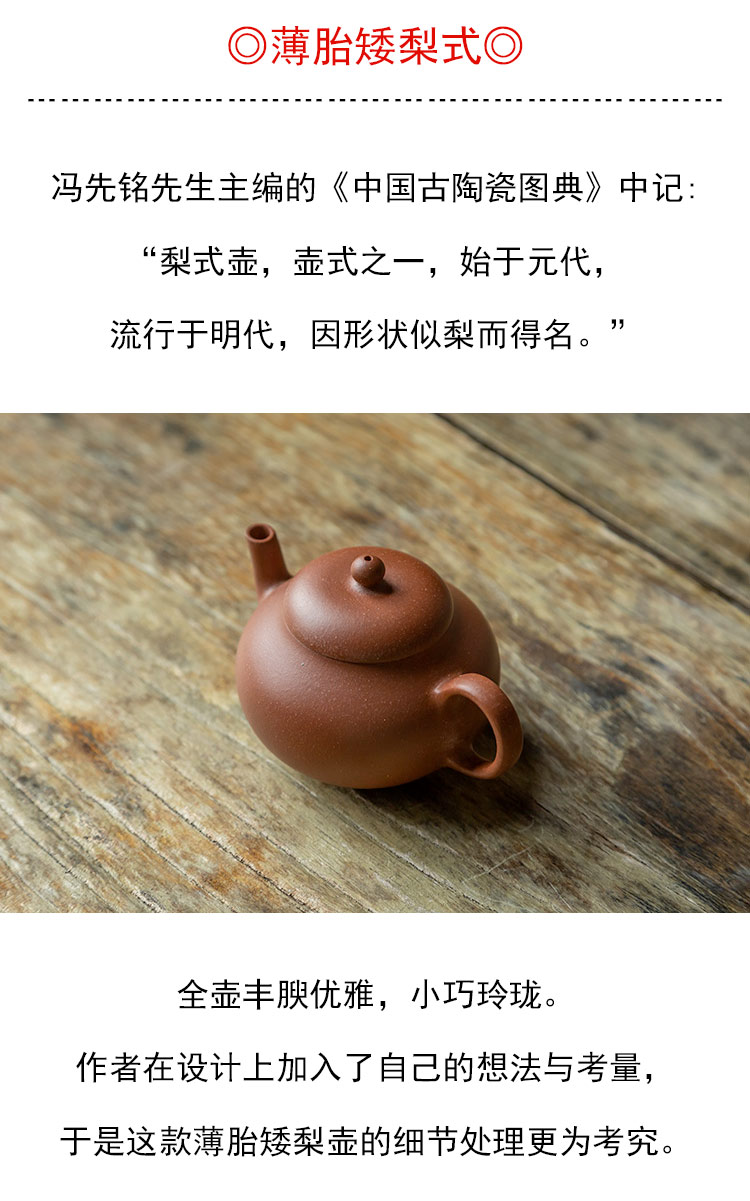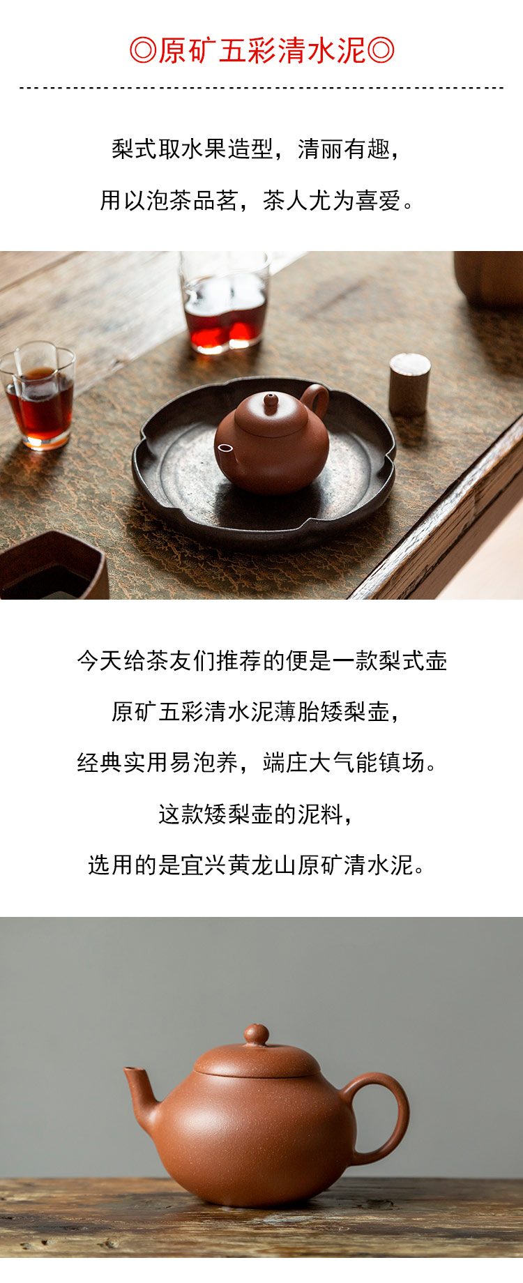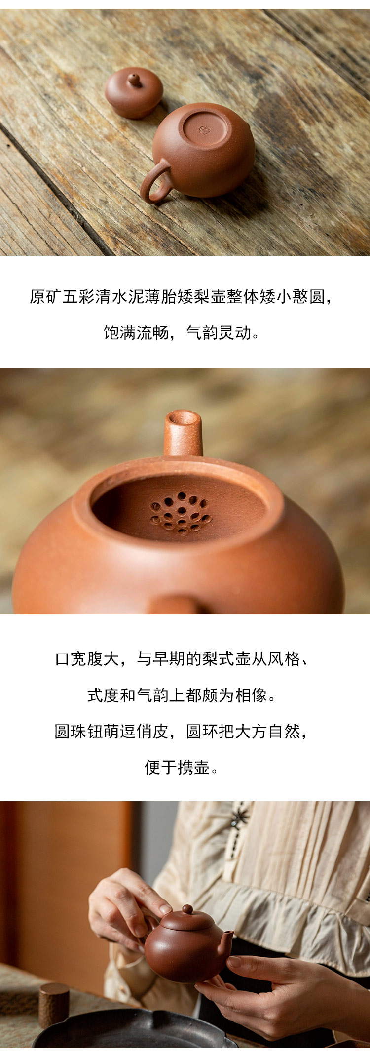 茶香记 紫砂壶 原矿五彩清水泥 薄胎矮梨式 茶壶 功夫茶具