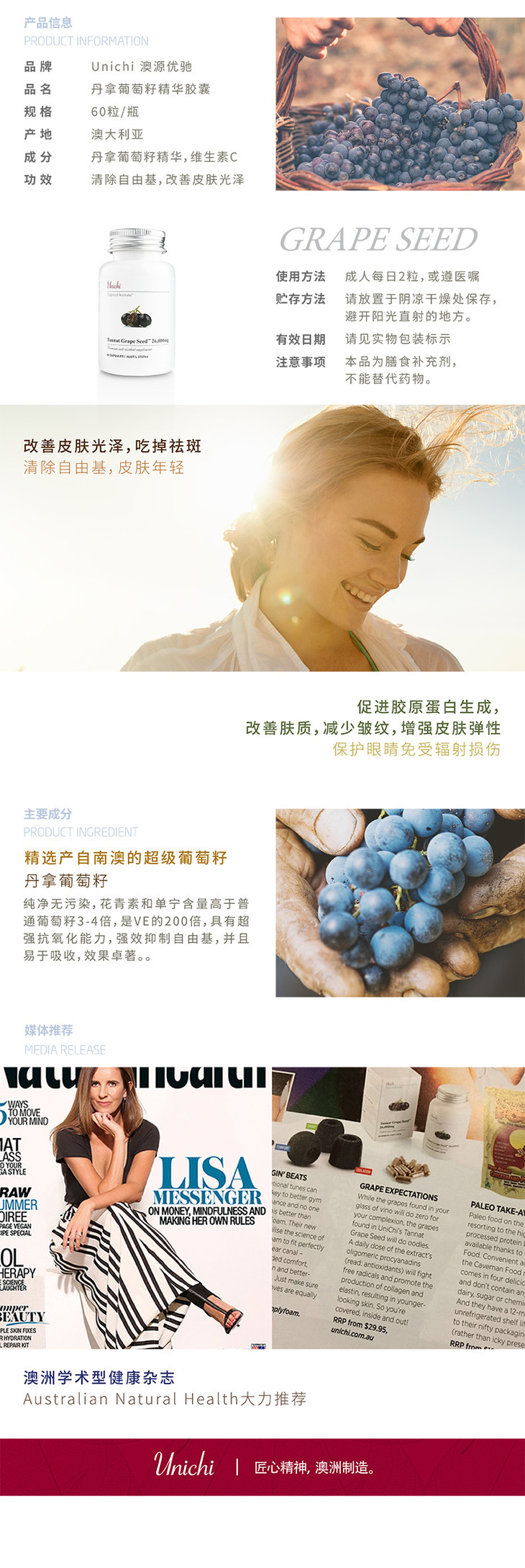 unichi葡萄籽精华胶囊降低黑色素提亮肤色60粒