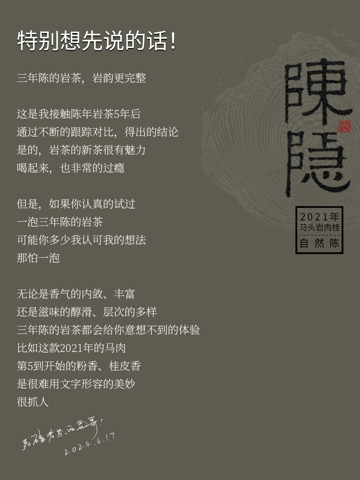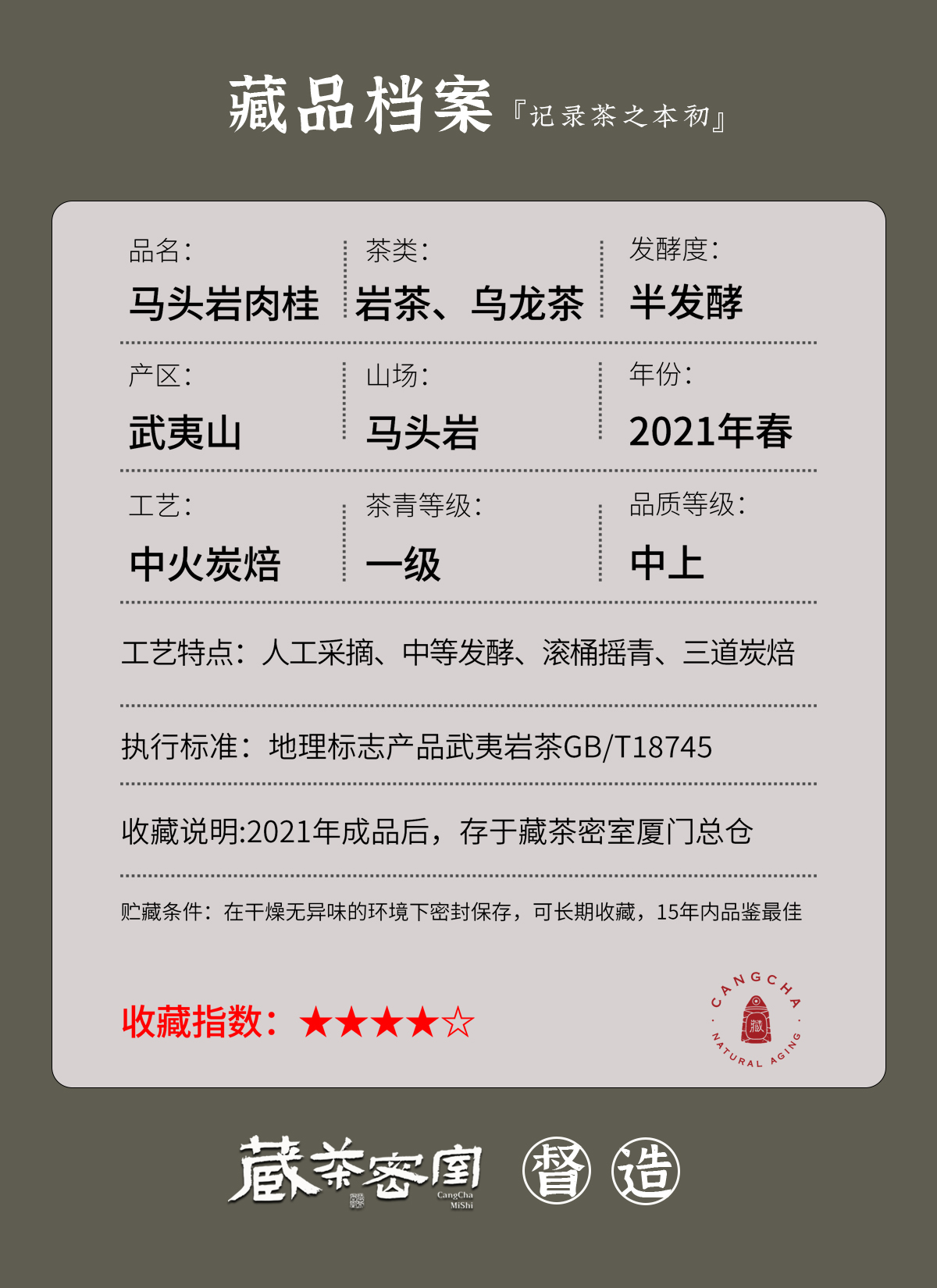 陈隐三年陈 2021年马头岩肉桂 花香大桂武夷正岩 [藏茶密室.宝之]