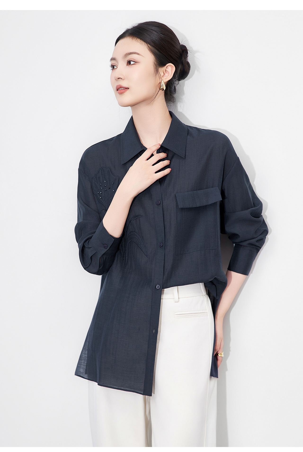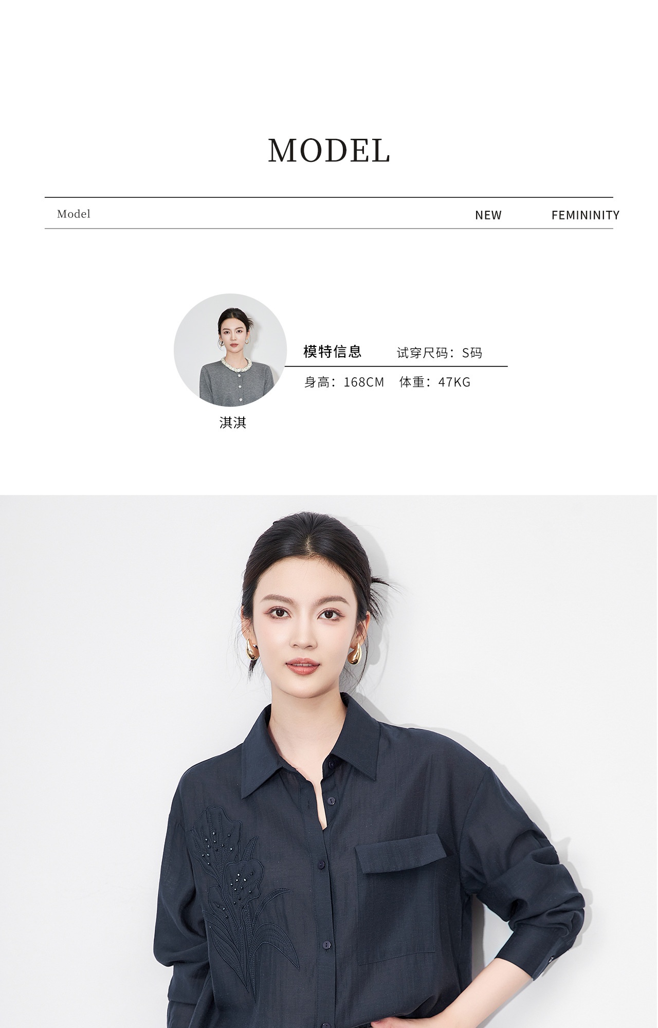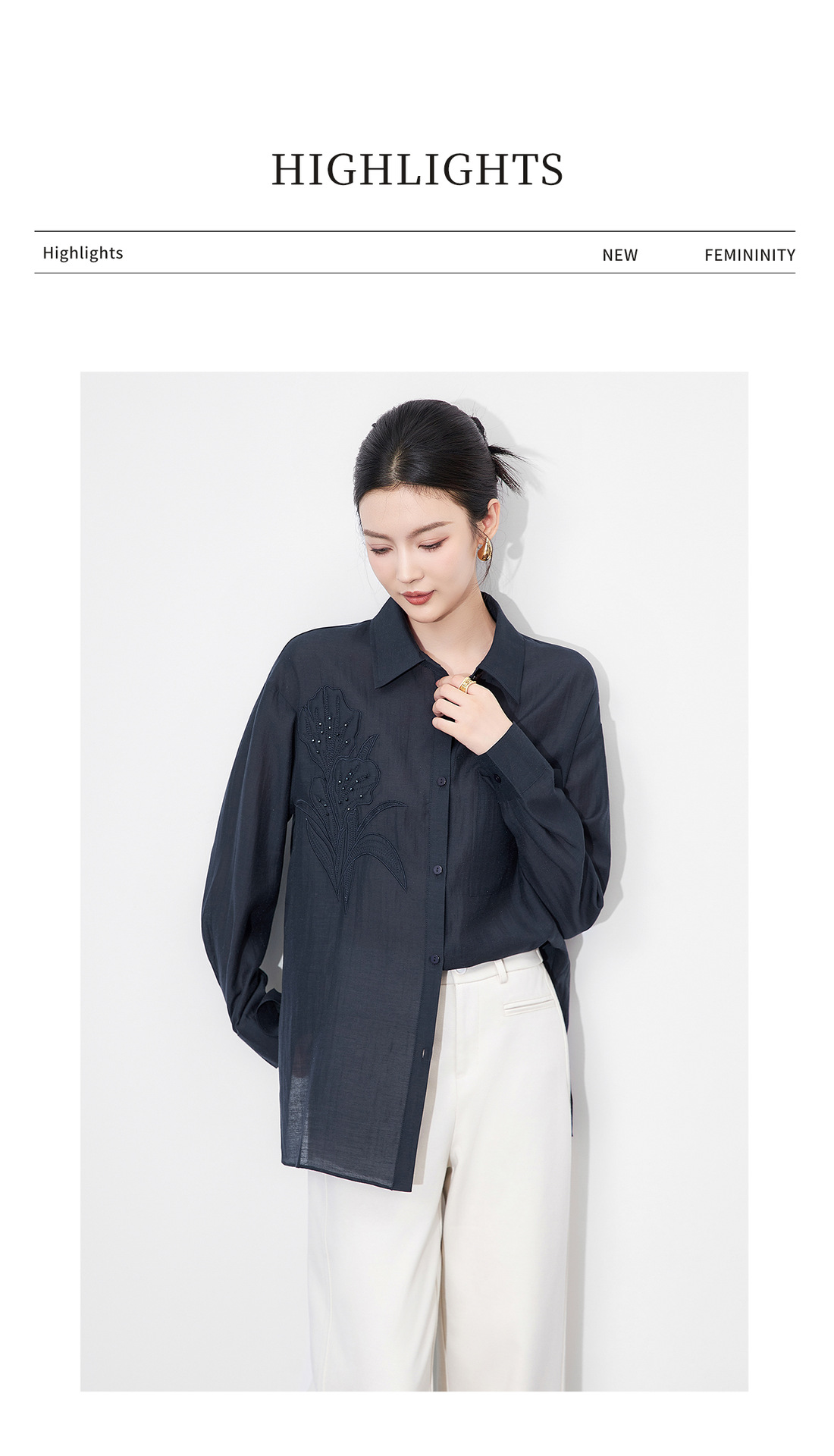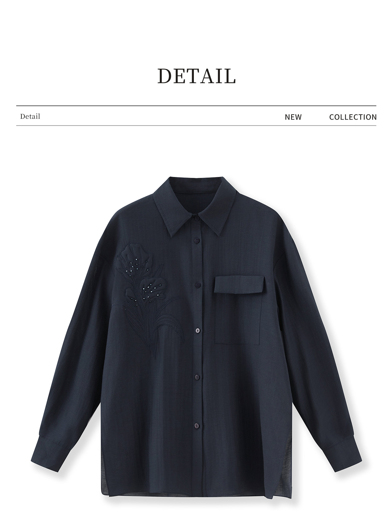 「高货wl」全新升级【铂金会员293/天猫389/差价96】(10508)洛诗琳重工立体刺绣钉珠衬衫2025秋季气质宽松翻领上衣女