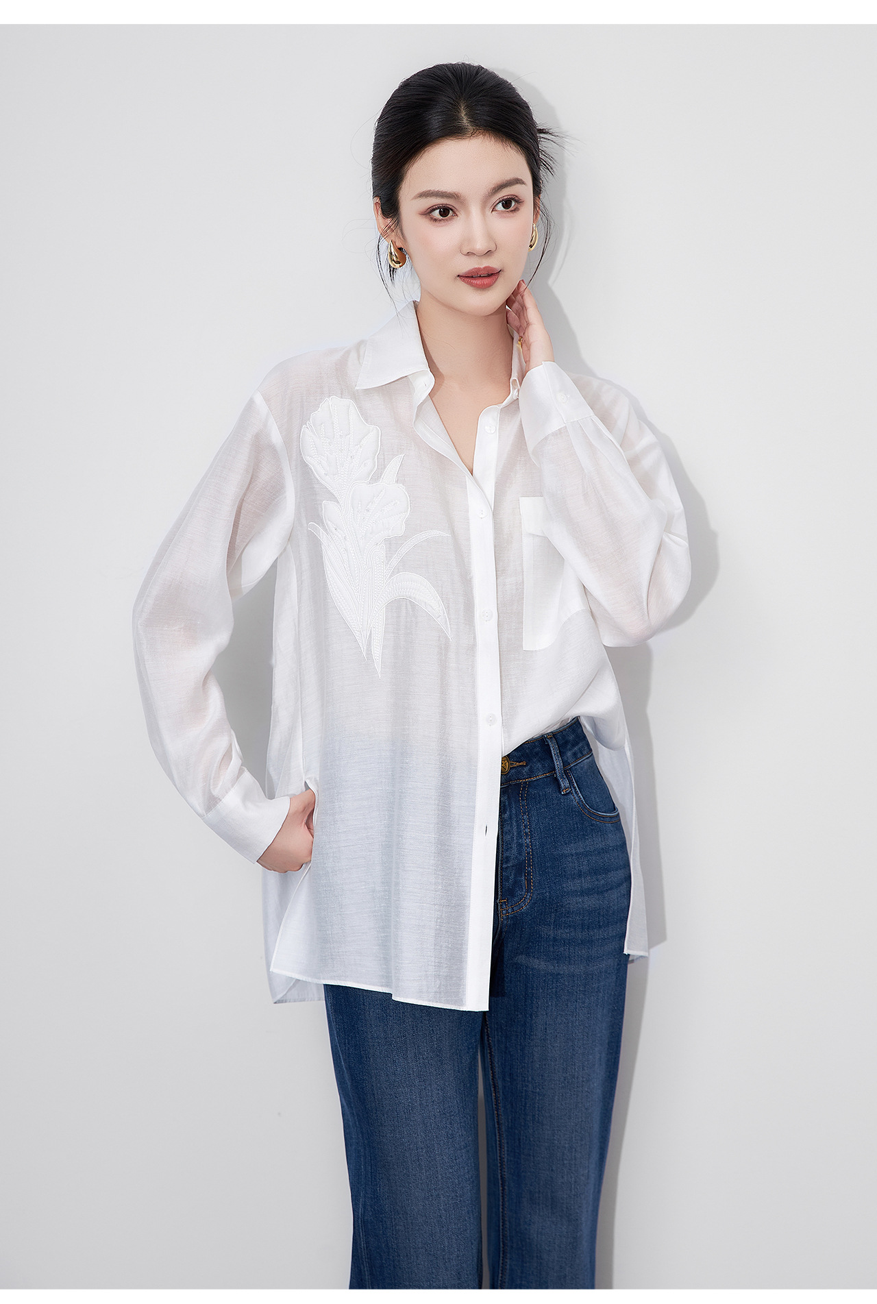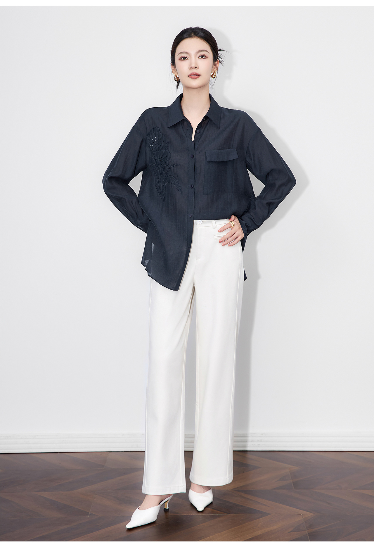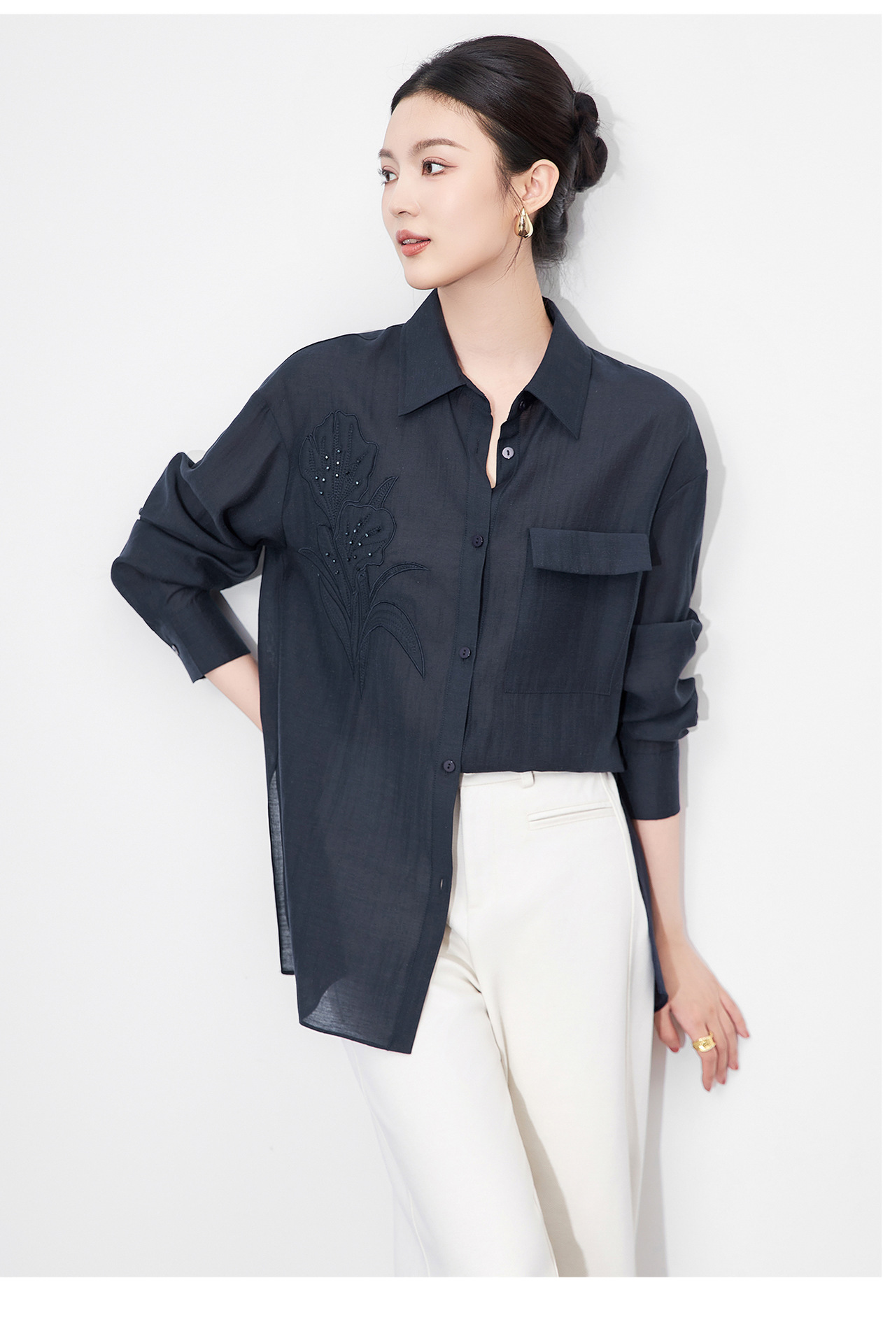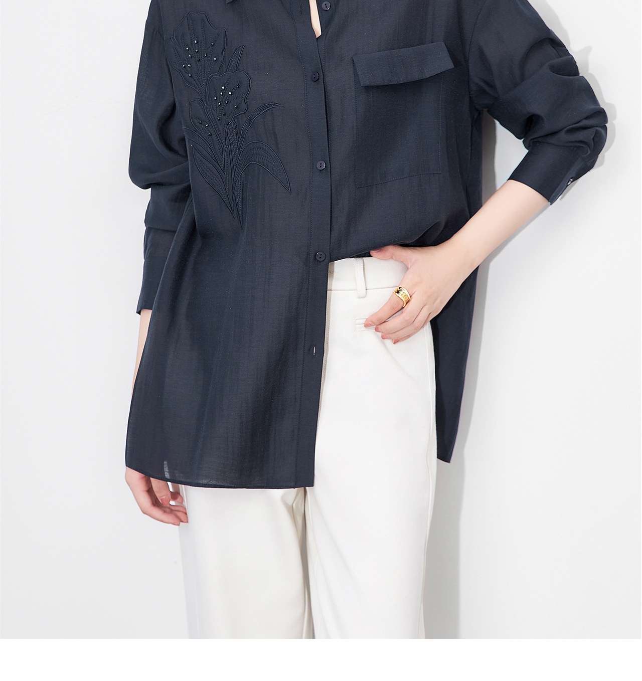 「高货wl」全新升级【铂金会员293/天猫389/差价96】(10508)洛诗琳重工立体刺绣钉珠衬衫2025秋季气质宽松翻领上衣女
