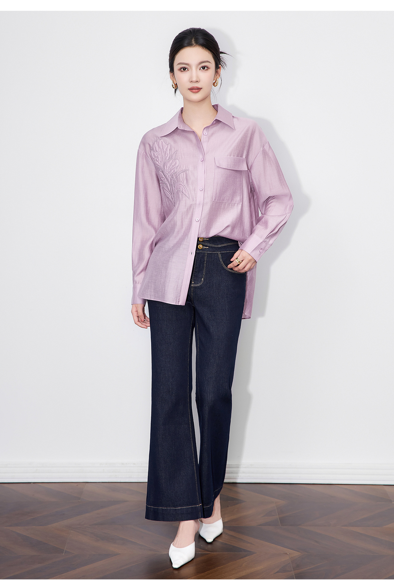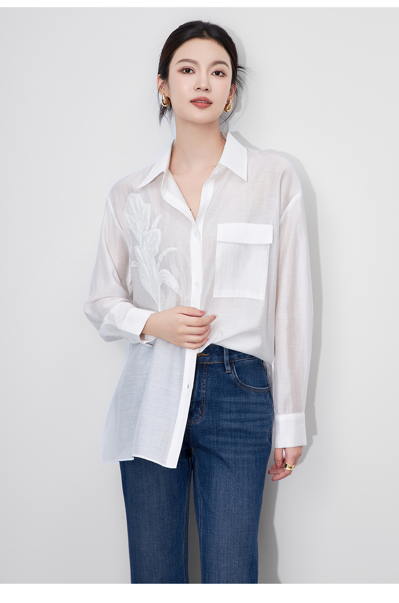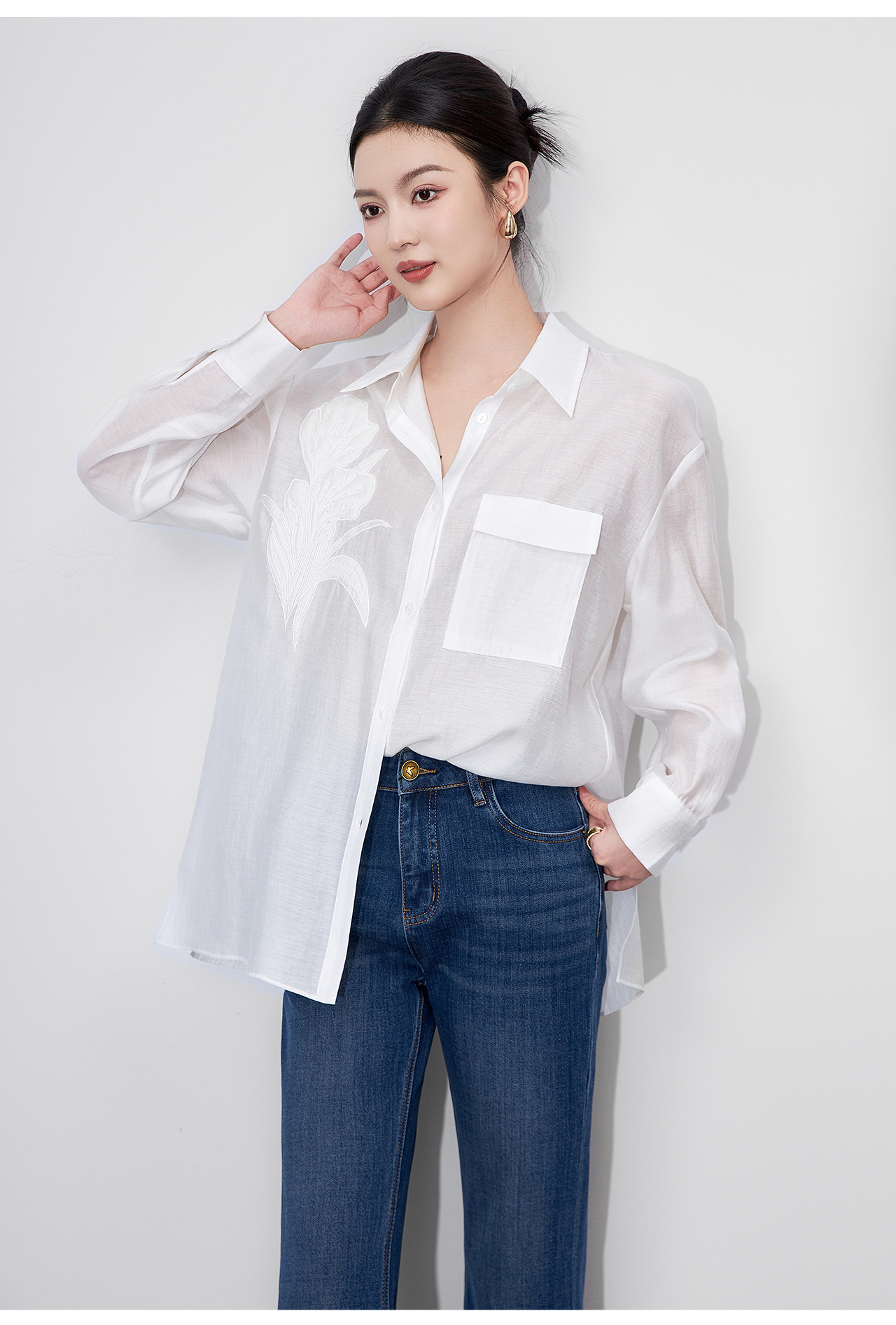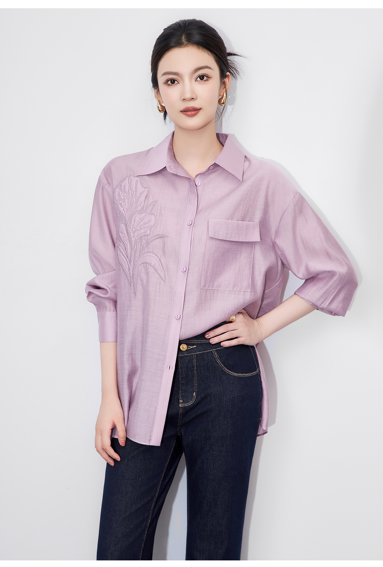 「高货wl」全新升级【铂金会员293/天猫389/差价96】(10508)洛诗琳重工立体刺绣钉珠衬衫2025秋季气质宽松翻领上衣女