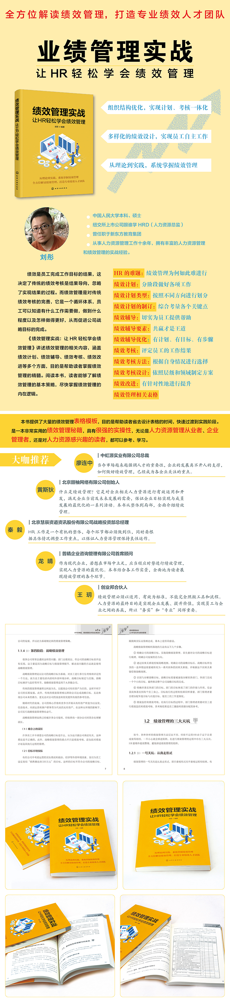 本书是一本非常实用的绩效管理秘籍,具有很强的实操性,无论是人力资源管理从业者、企业管理者,还是对人力资源感兴趣的读者,都可以参考、学习。