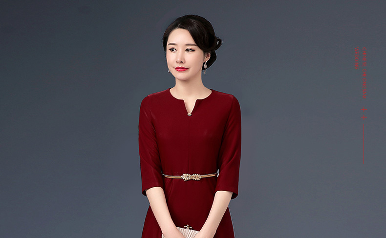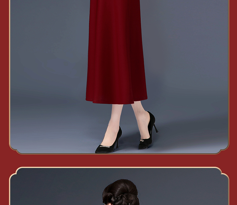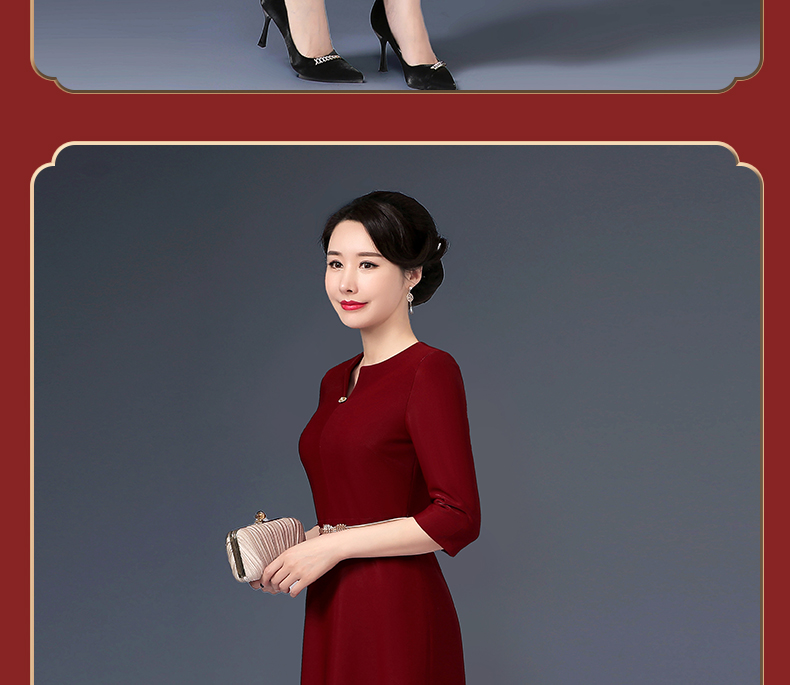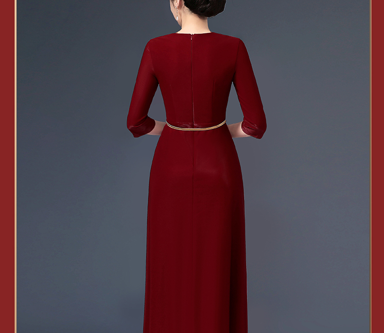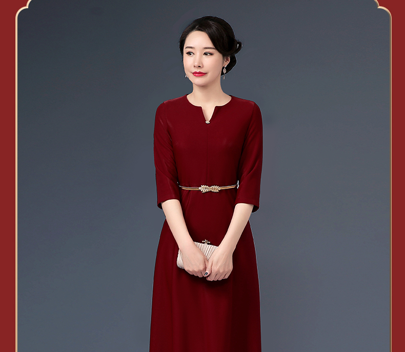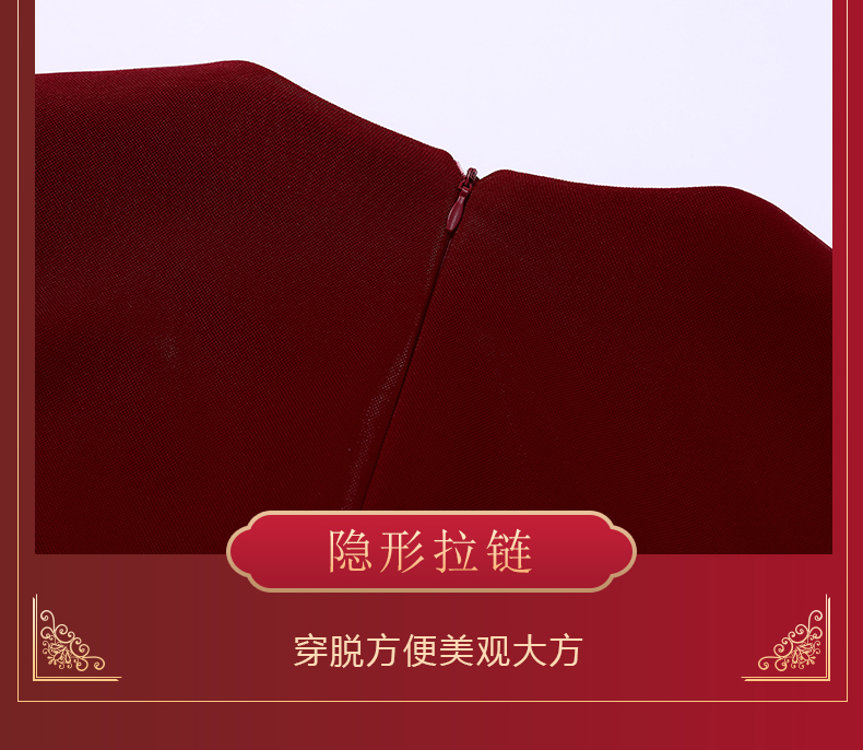 上海旗袍厂WD-W254旗袍裙大码遮肚礼服婚宴婚庆酒红连衣裙