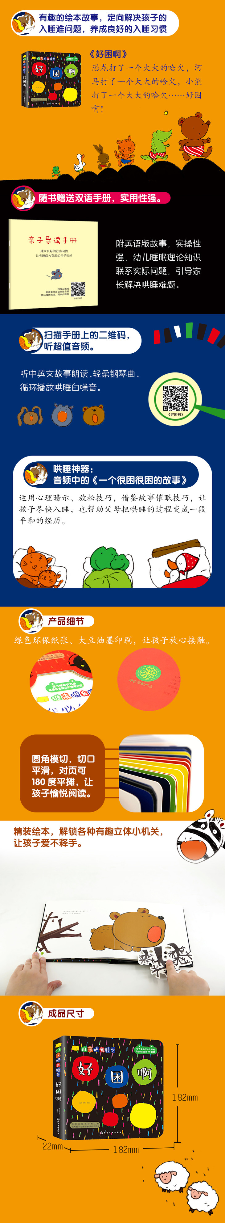3.赠双语手册,附睡眠理论知识联系各种具体哄睡问题,引导家长了解孩子入睡的生理、心理知识,定向解决哄睡难题,实用性和指导性强。