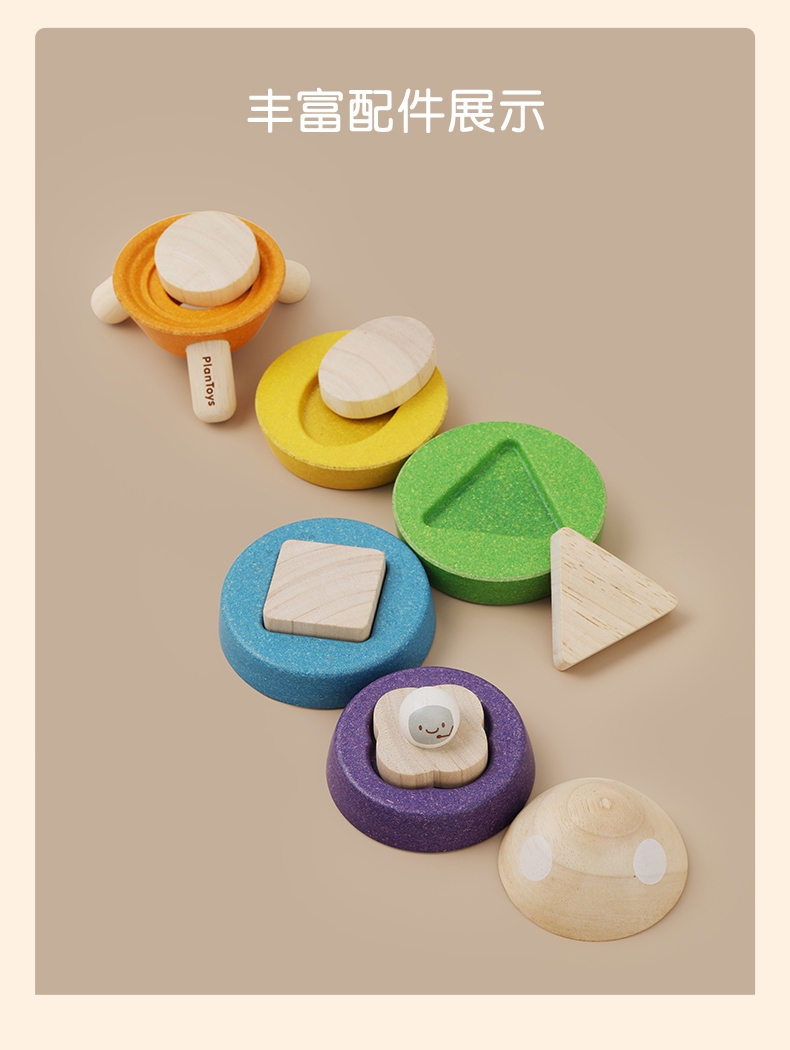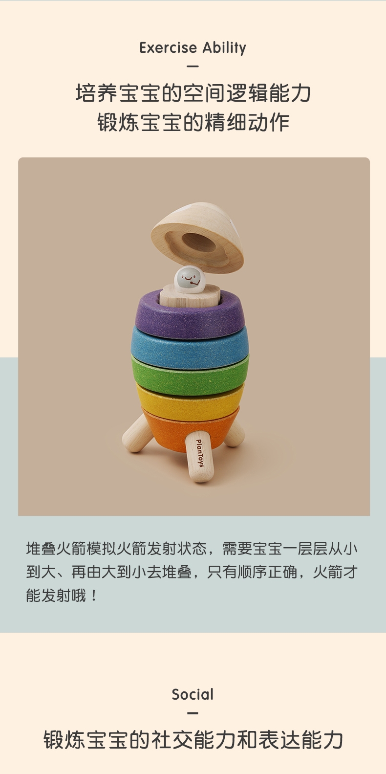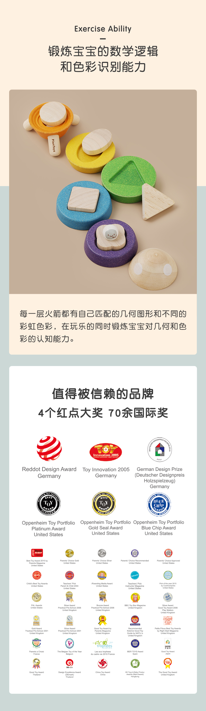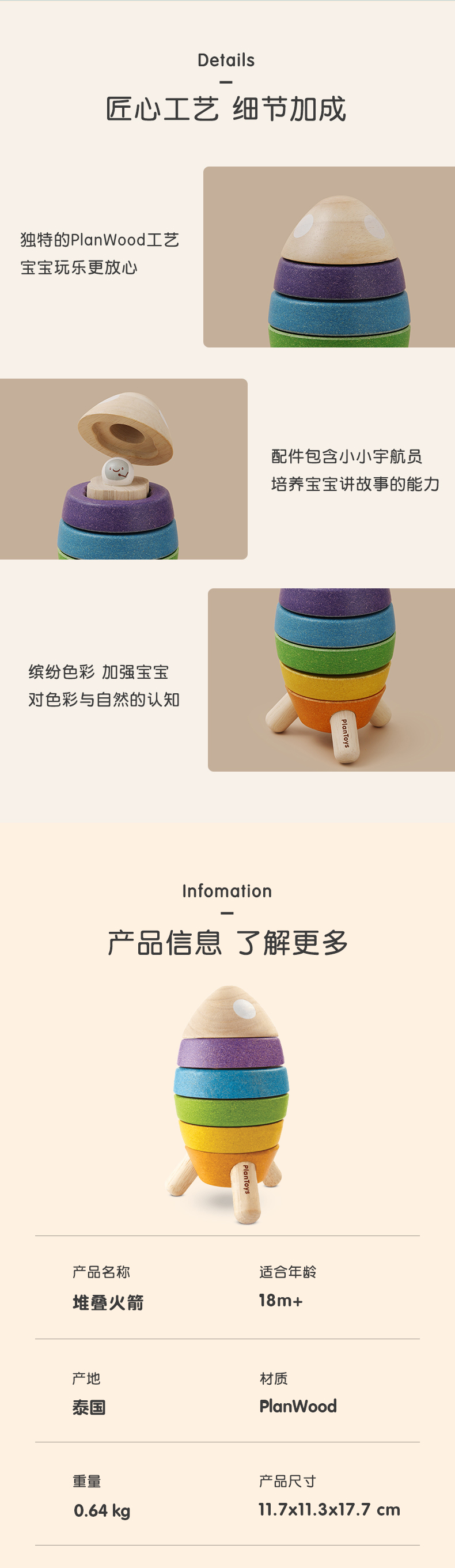 【PlanToys】木制儿童形状配对认知叠叠圈早教几何玩具 5694堆叠火箭