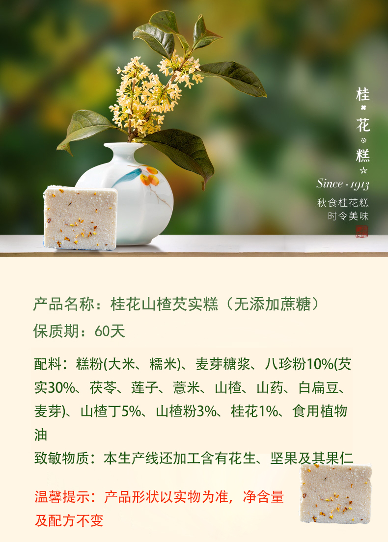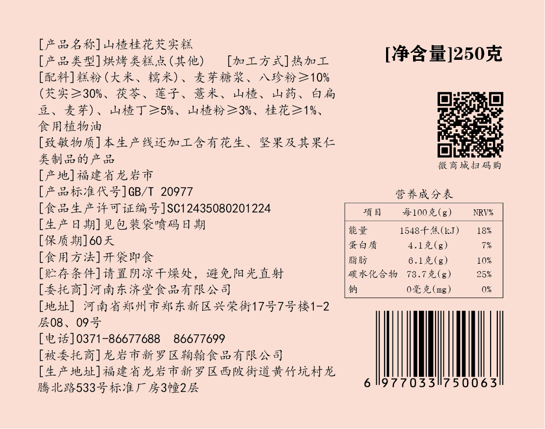 东济堂山楂桂花芡实糕 粗粮代餐 消化好脾胃好桂花香250g/袋【产品形状以实物为准】