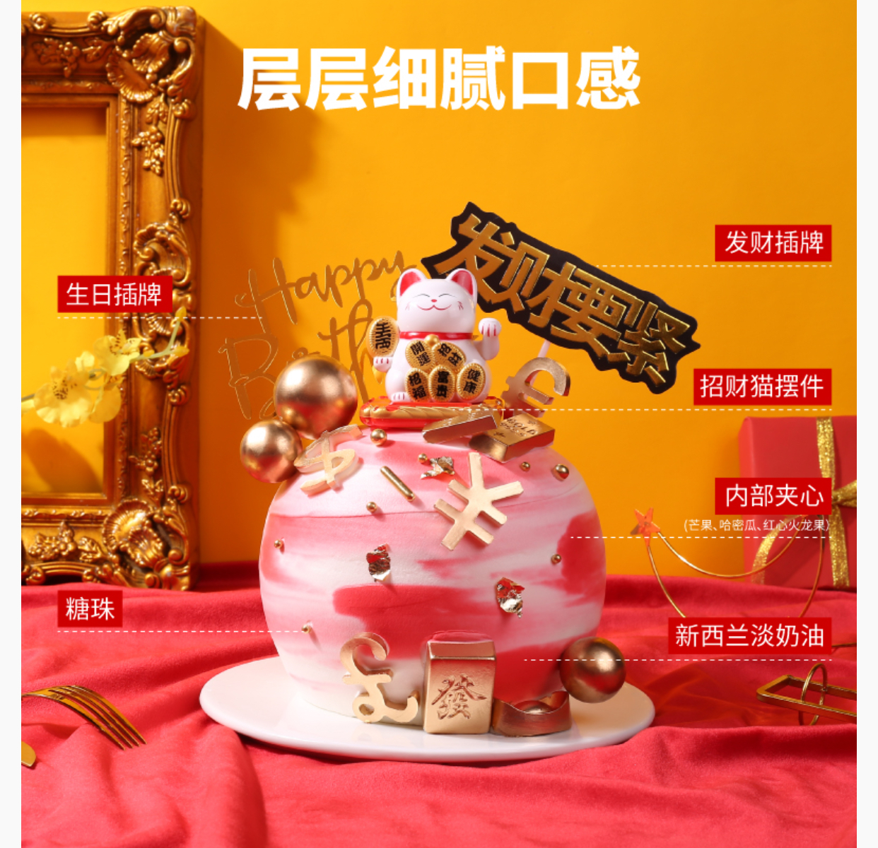 大福招财猫生日蛋糕(招财进宝)