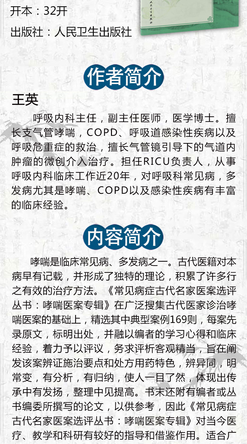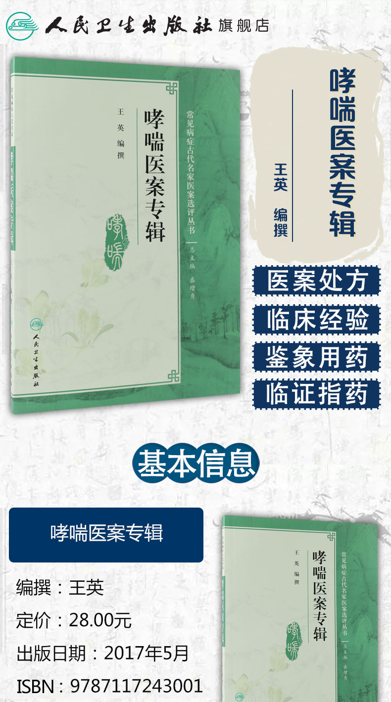 哮喘医案专辑 王英 编撰 常见病症古代名家医案选评丛书 中医内科 9787117243001 2017年5月参考书 人卫