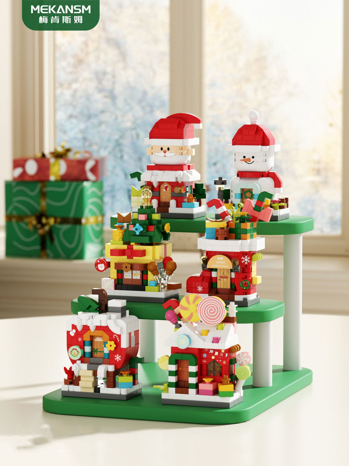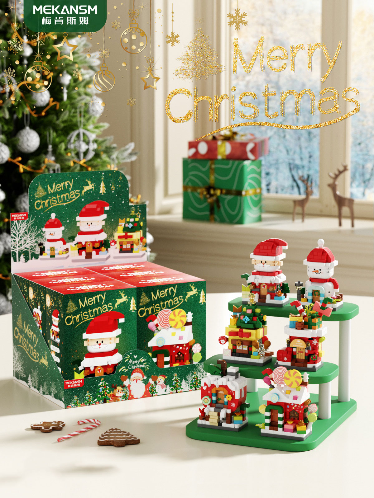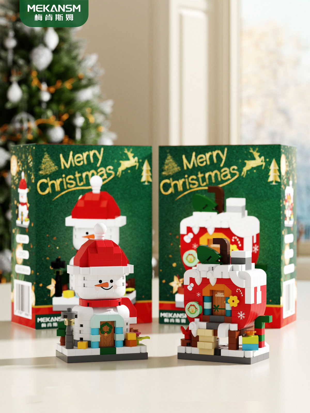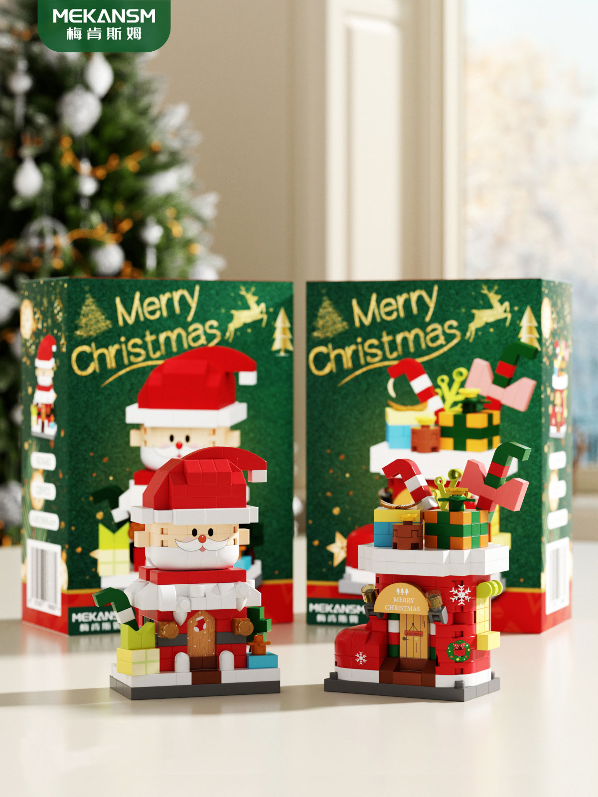 圣诞甜甜屋老人麋鹿公仔拼装积木儿童益智玩具圣诞节礼物