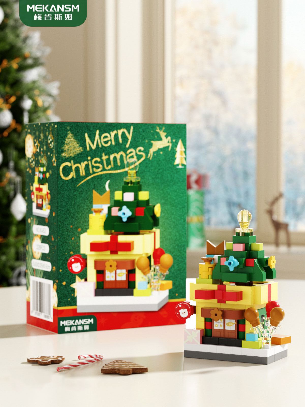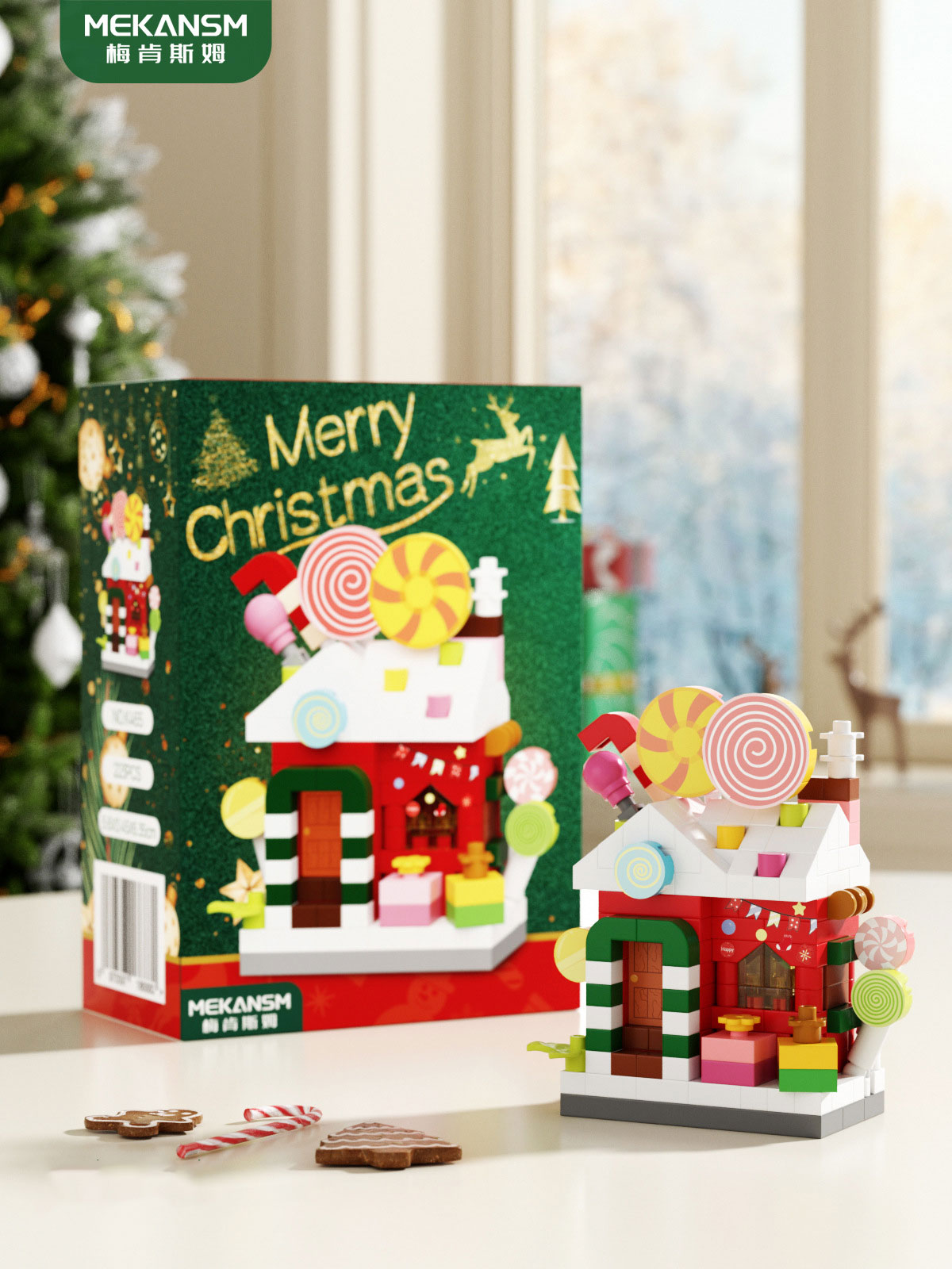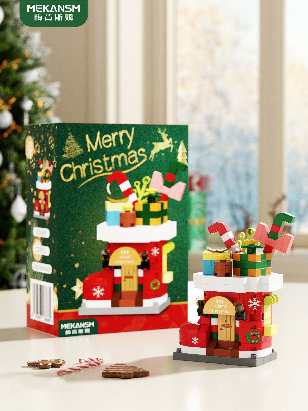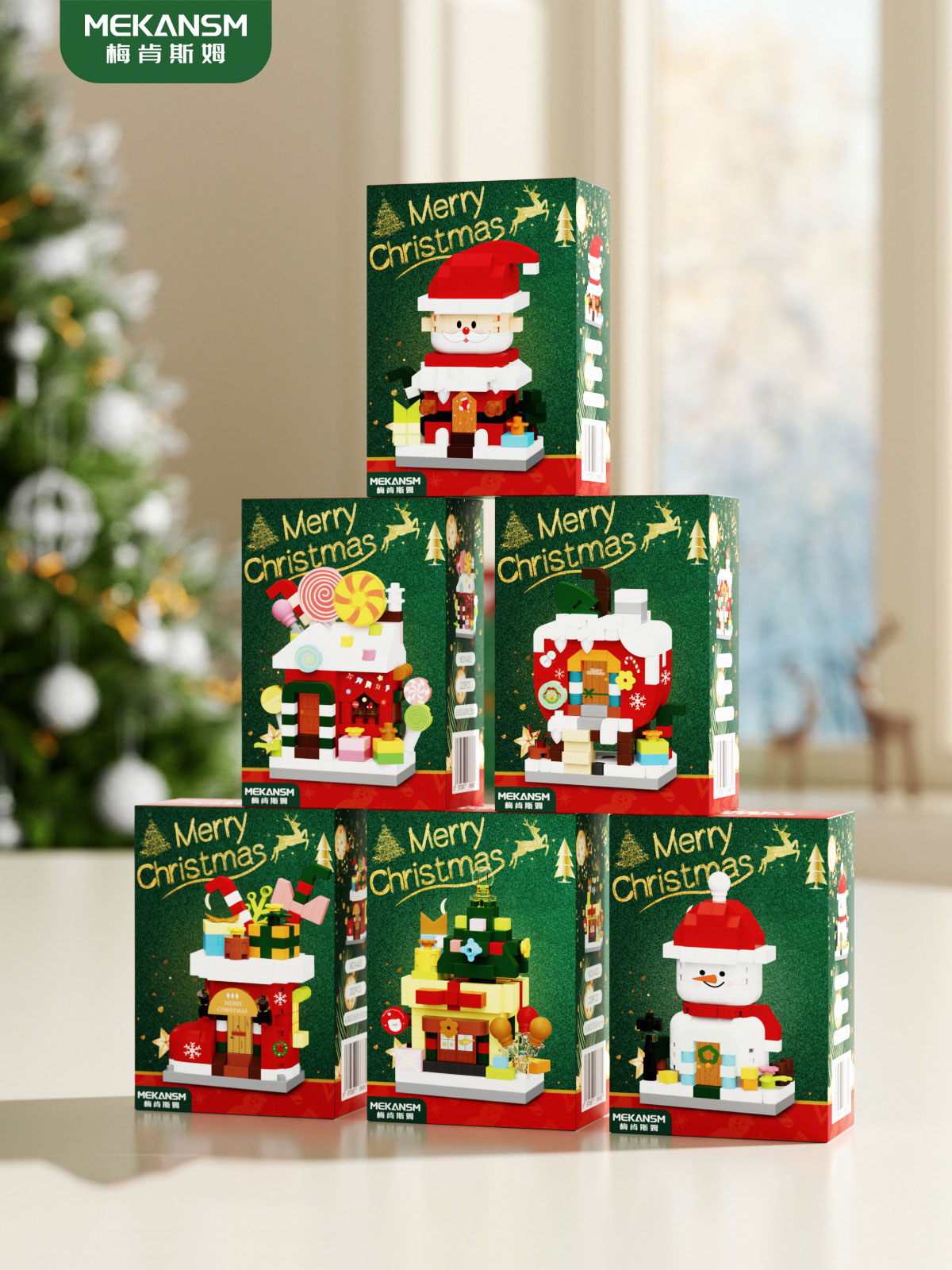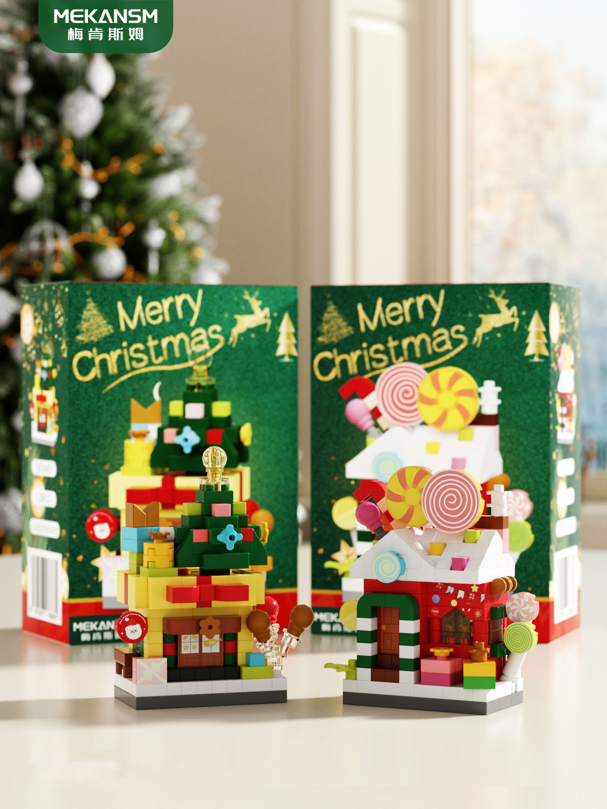 圣诞甜甜屋老人麋鹿公仔拼装积木儿童益智玩具圣诞节礼物
