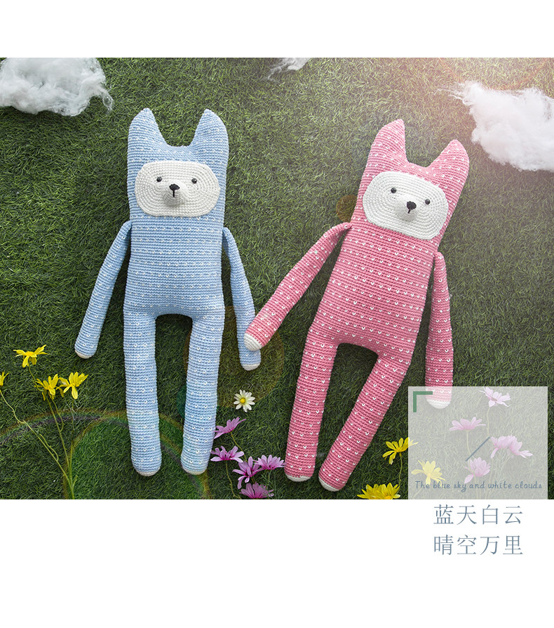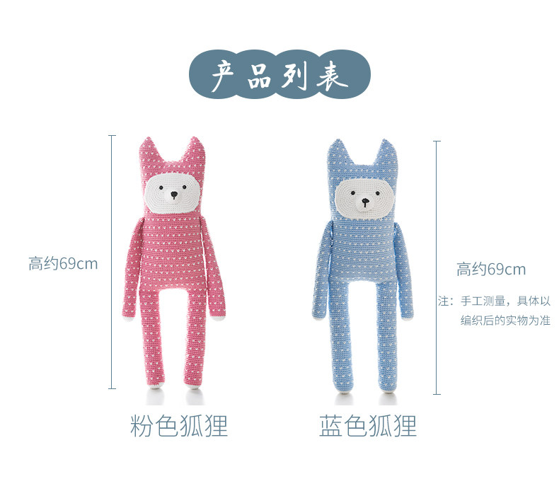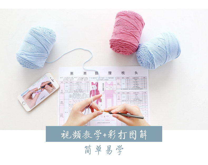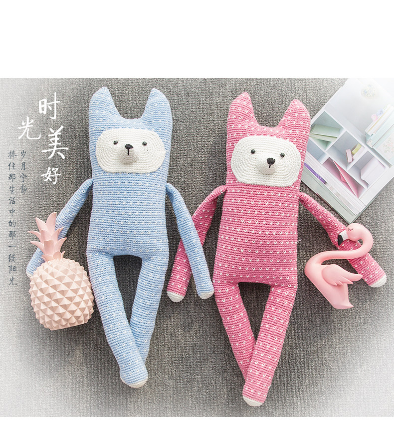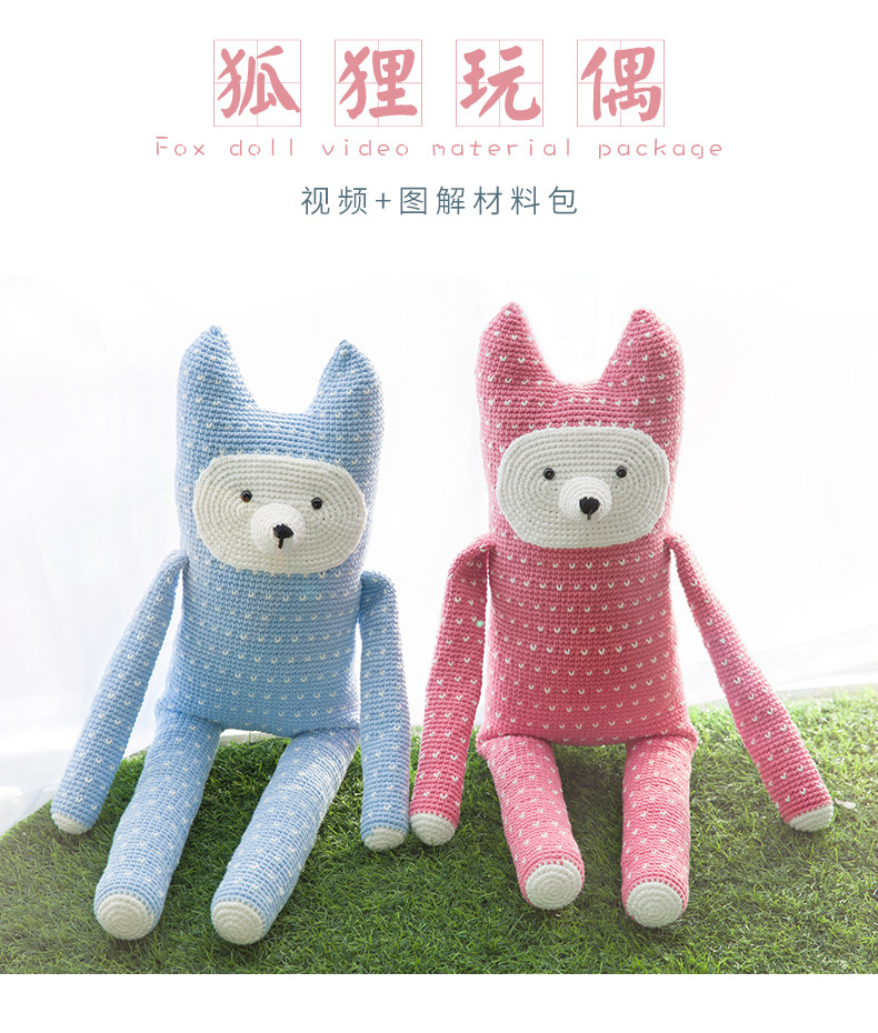 如意鸟新款彩虹棉崽崽狐狸枕头抱枕靠枕材料包diy编织毛线送教程