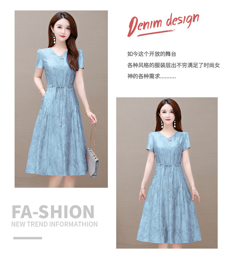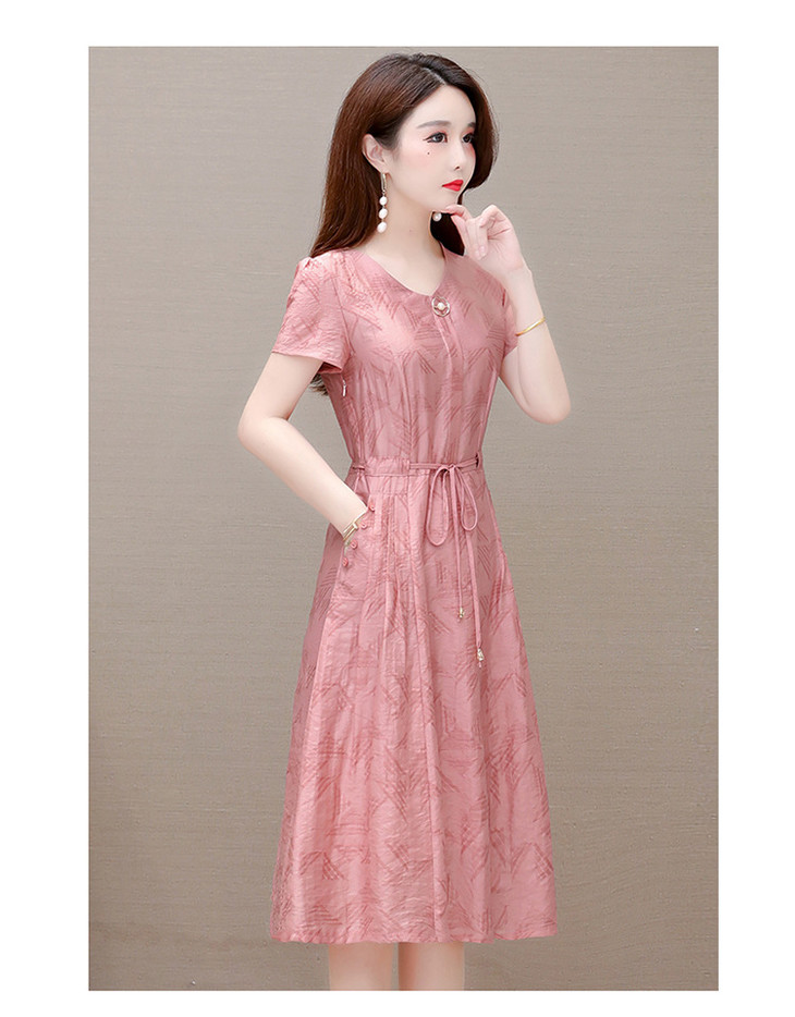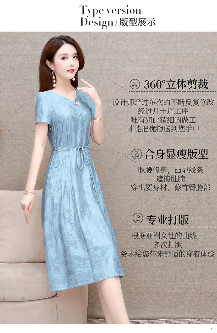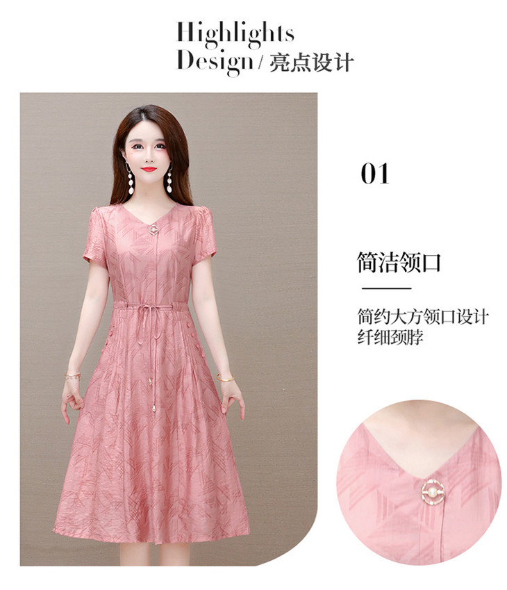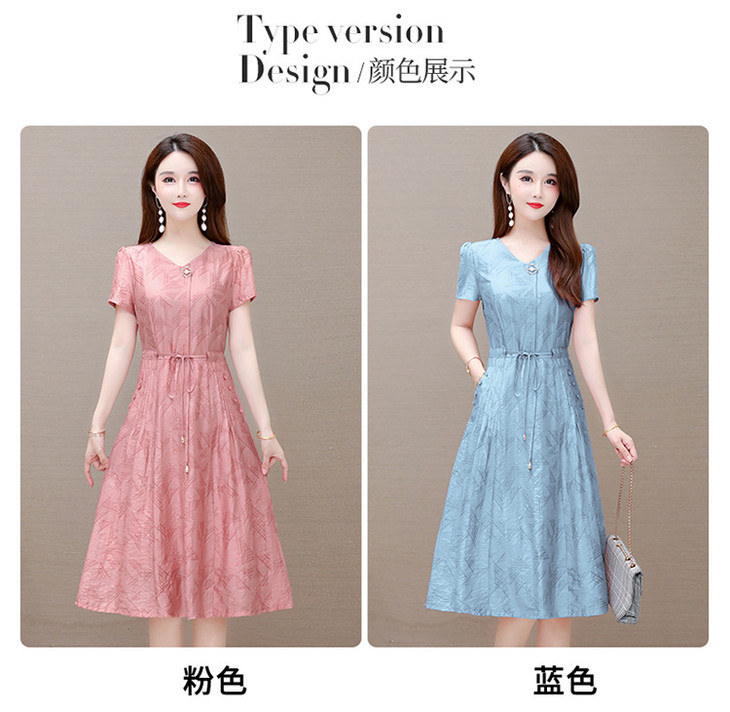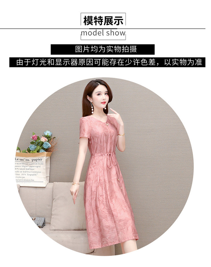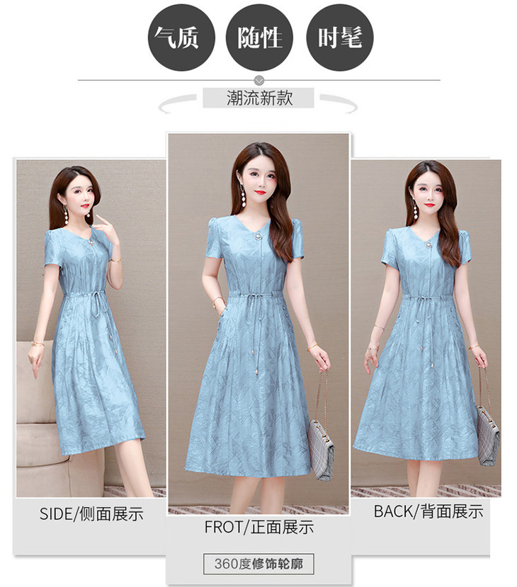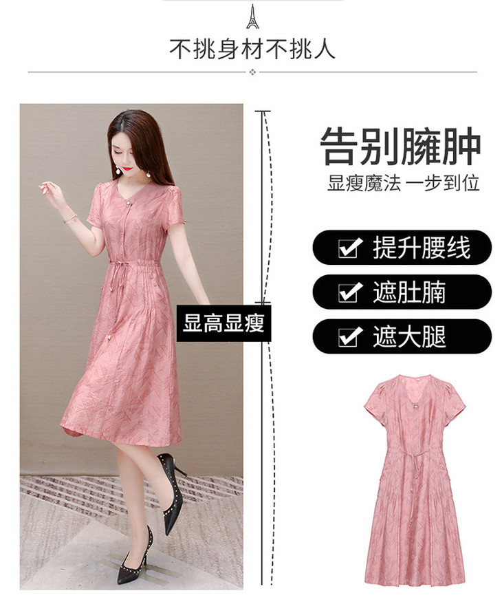 OYMXQD-XC822-L2024年夏款中长款气质修身时尚连衣裙小个子休闲大码短袖A字裙