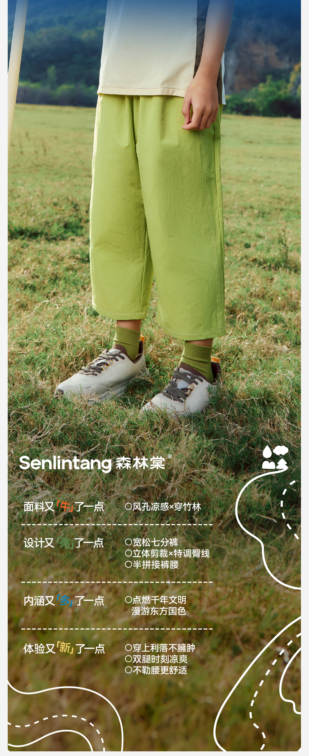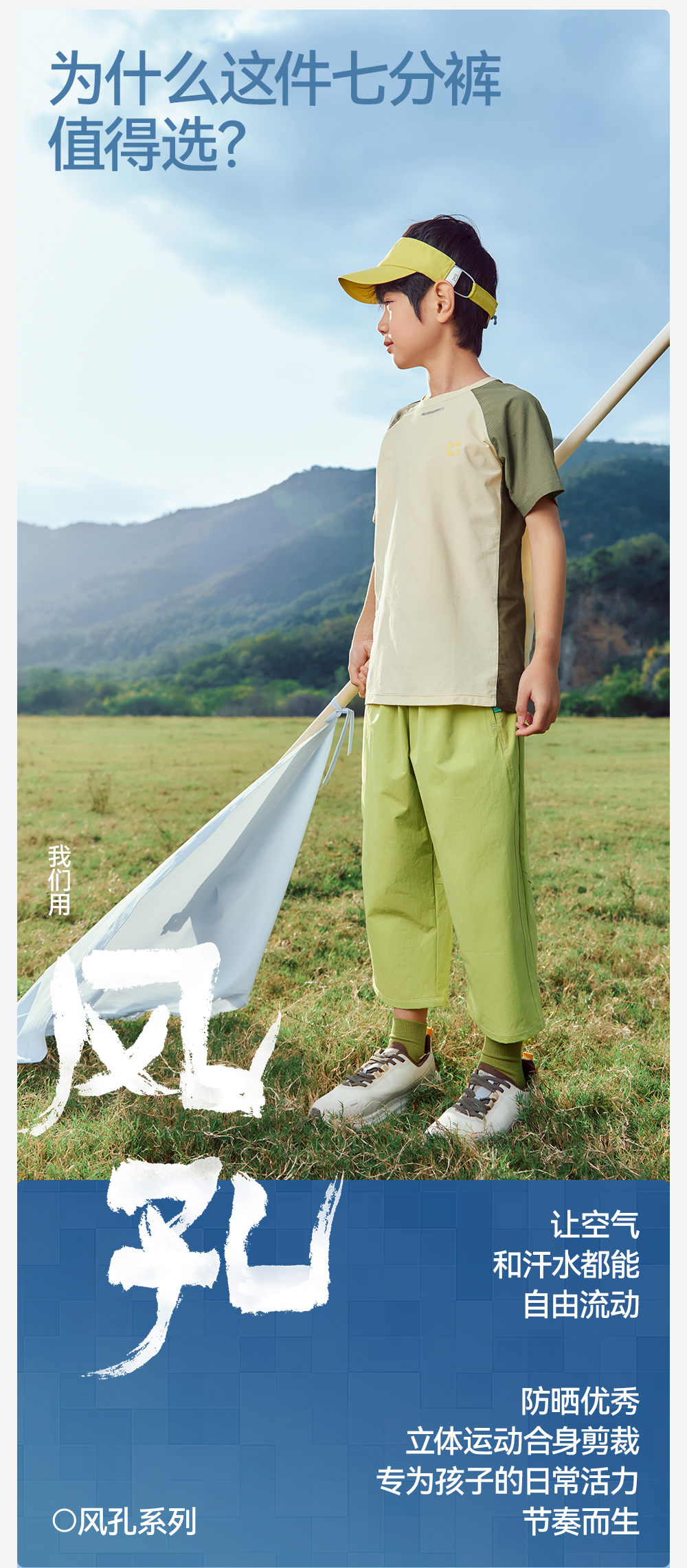 【凉感防晒七分裤】森林棠26夏款风孔透气清凉舒适宽松儿童休闲裤42062029