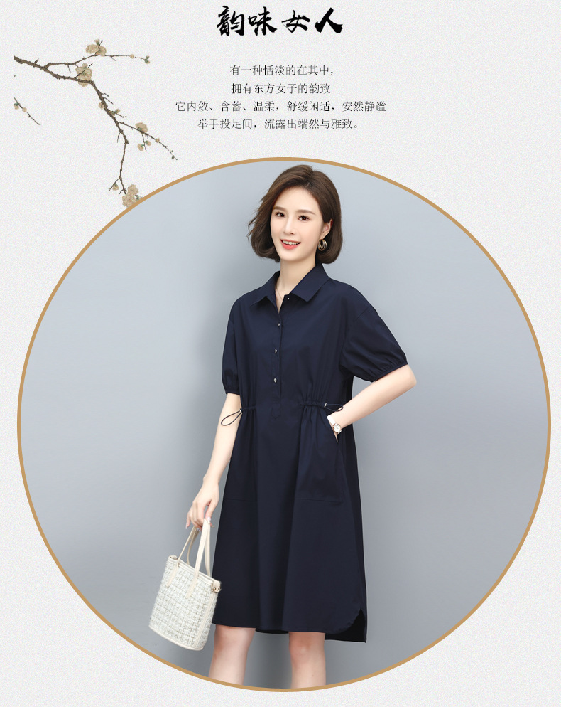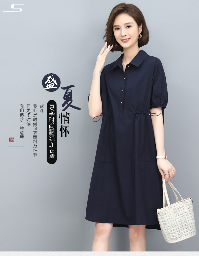 丁摩 休闲宽松显瘦遮肚子连衣裙女夏季新款洋气直筒裙5ZF-5123
