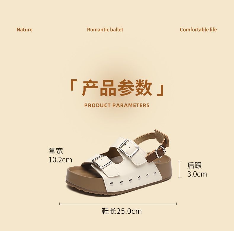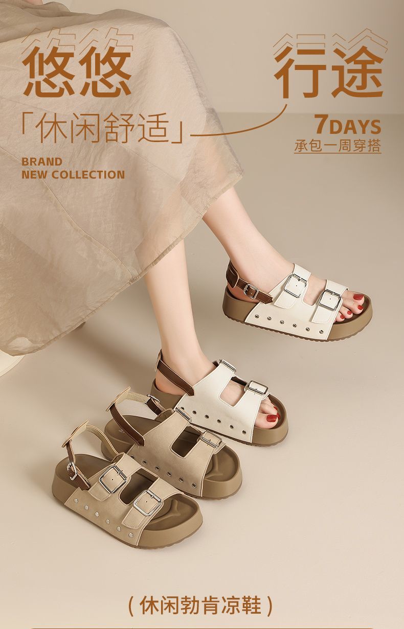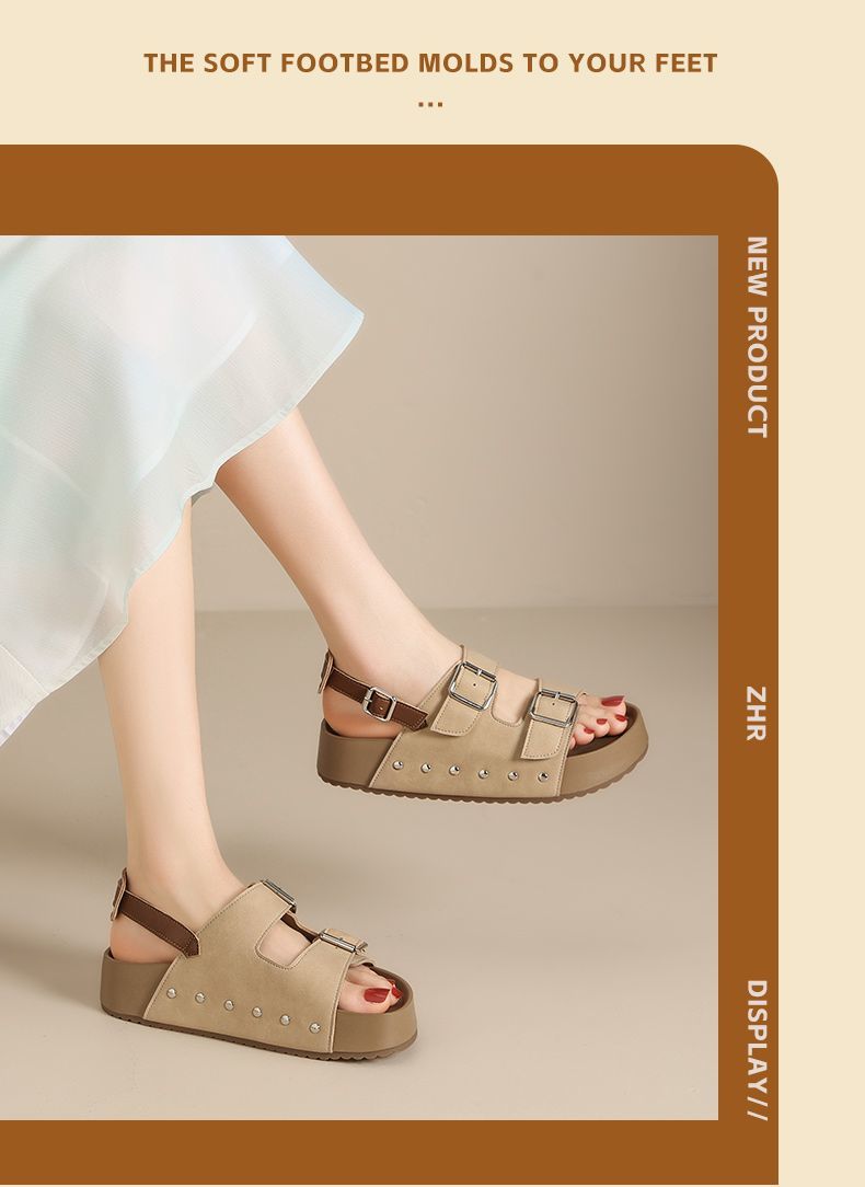 ZHR则则复古勃肯凉鞋女舒适超软夏季百搭厚底凉鞋女外穿休闲凉鞋
