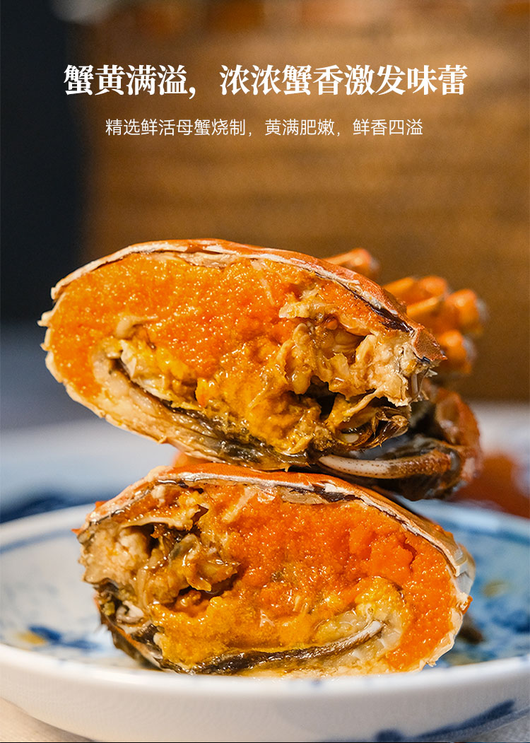 【净含量】2.3-2.6两/只母蟹*4只 约750克/盒