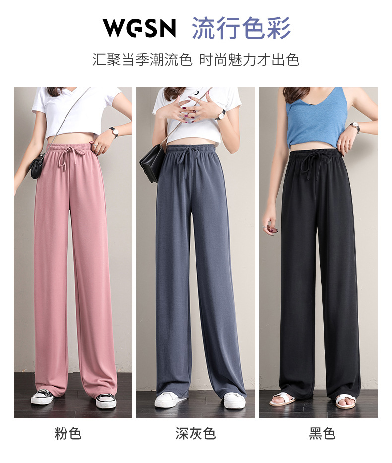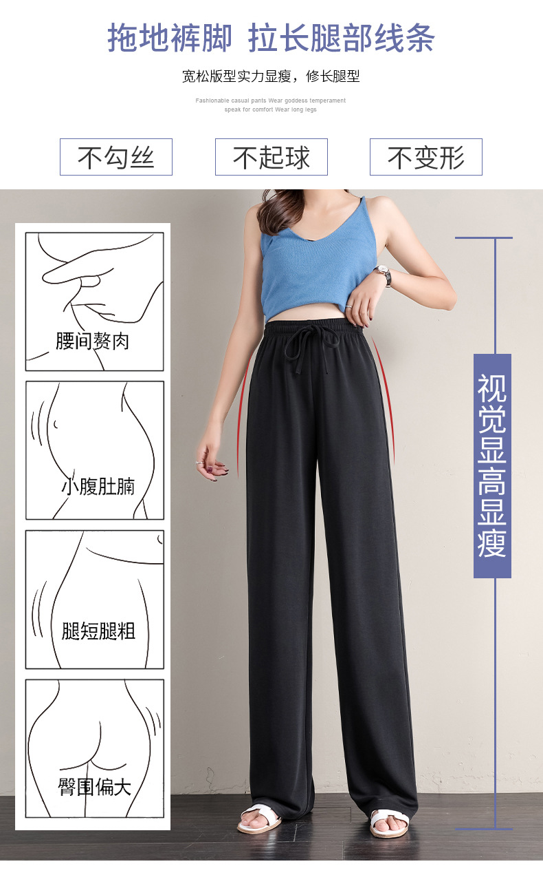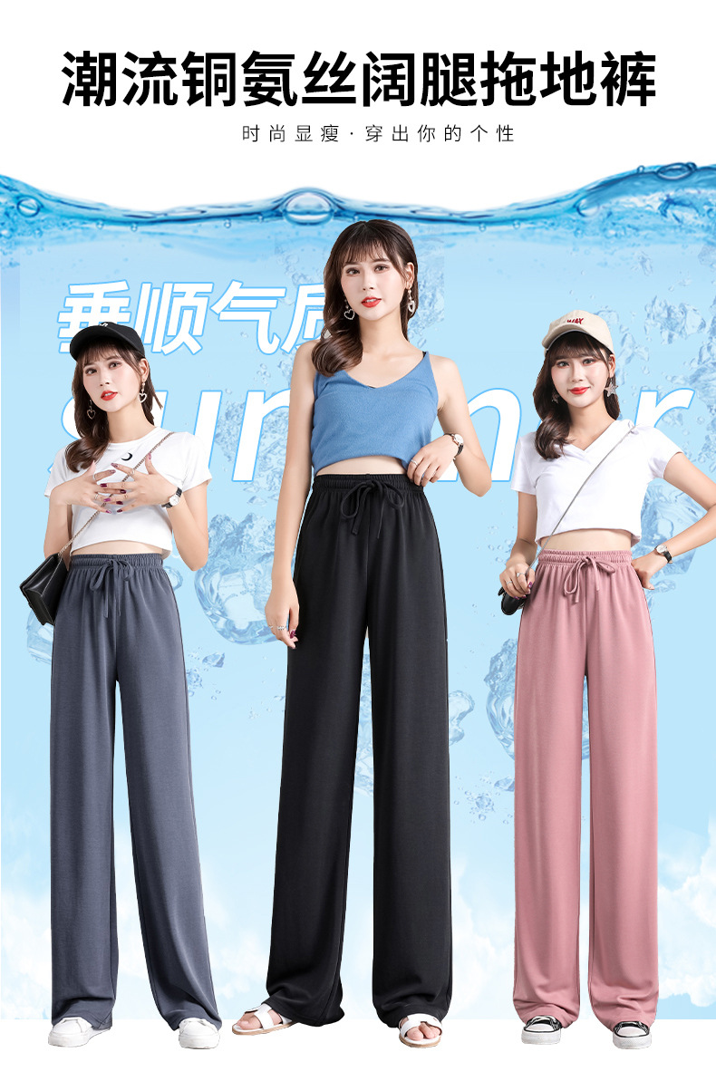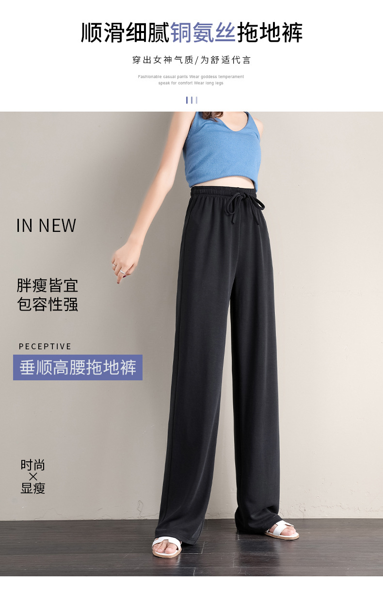 丁摩 冰丝铜氨丝阔腿裤女夏季薄款高腰垂感直筒裤运动宽松拖地裤子5ZF-K278