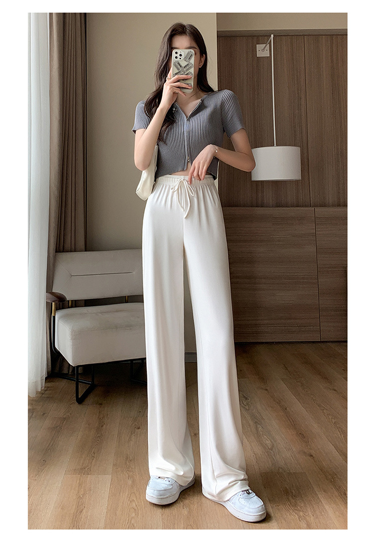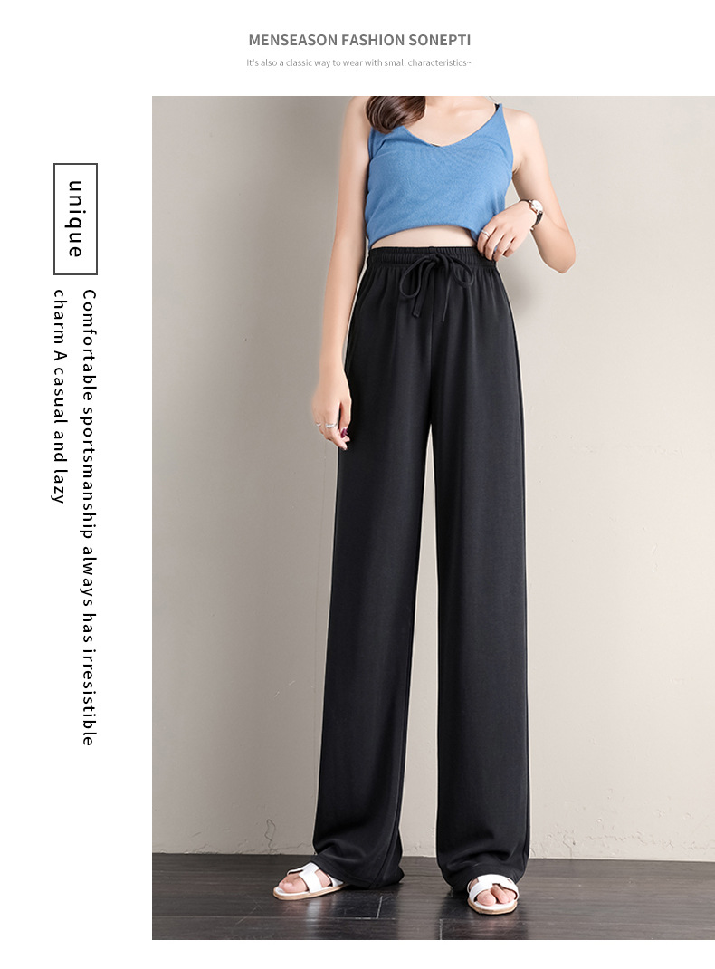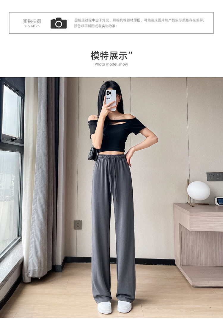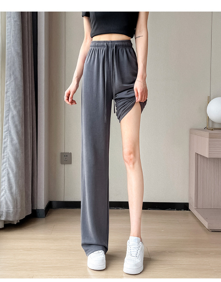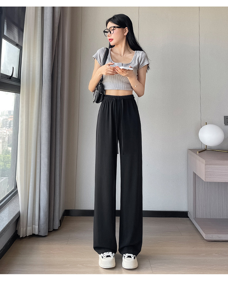 丁摩 冰丝铜氨丝阔腿裤女夏季薄款高腰垂感直筒裤运动宽松拖地裤子5ZF-K278
