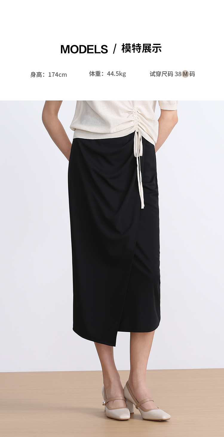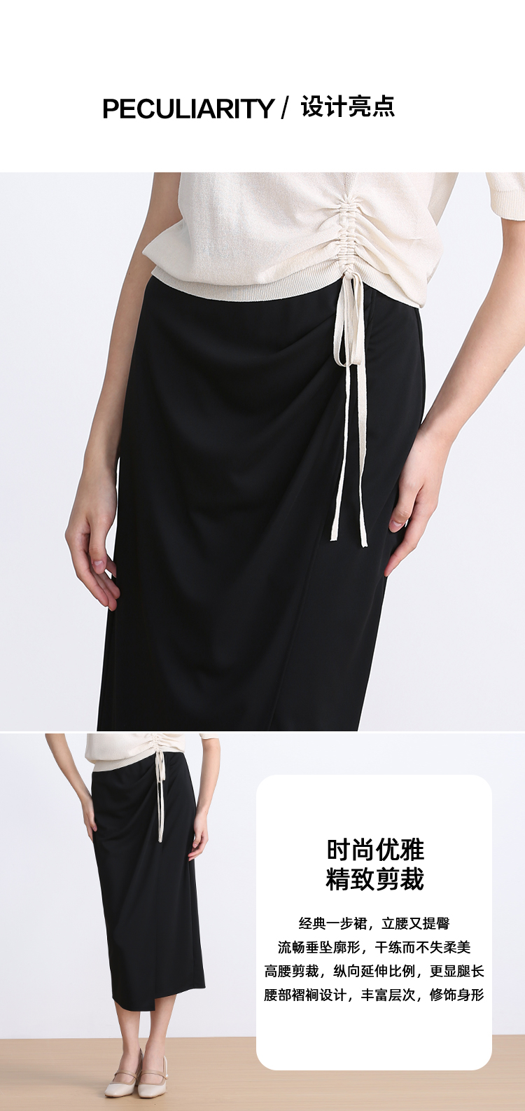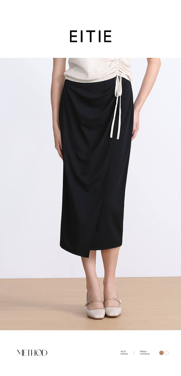 EITIE爱特爱夏季新款气质高级感提褶高腰包臀半身裙7806518