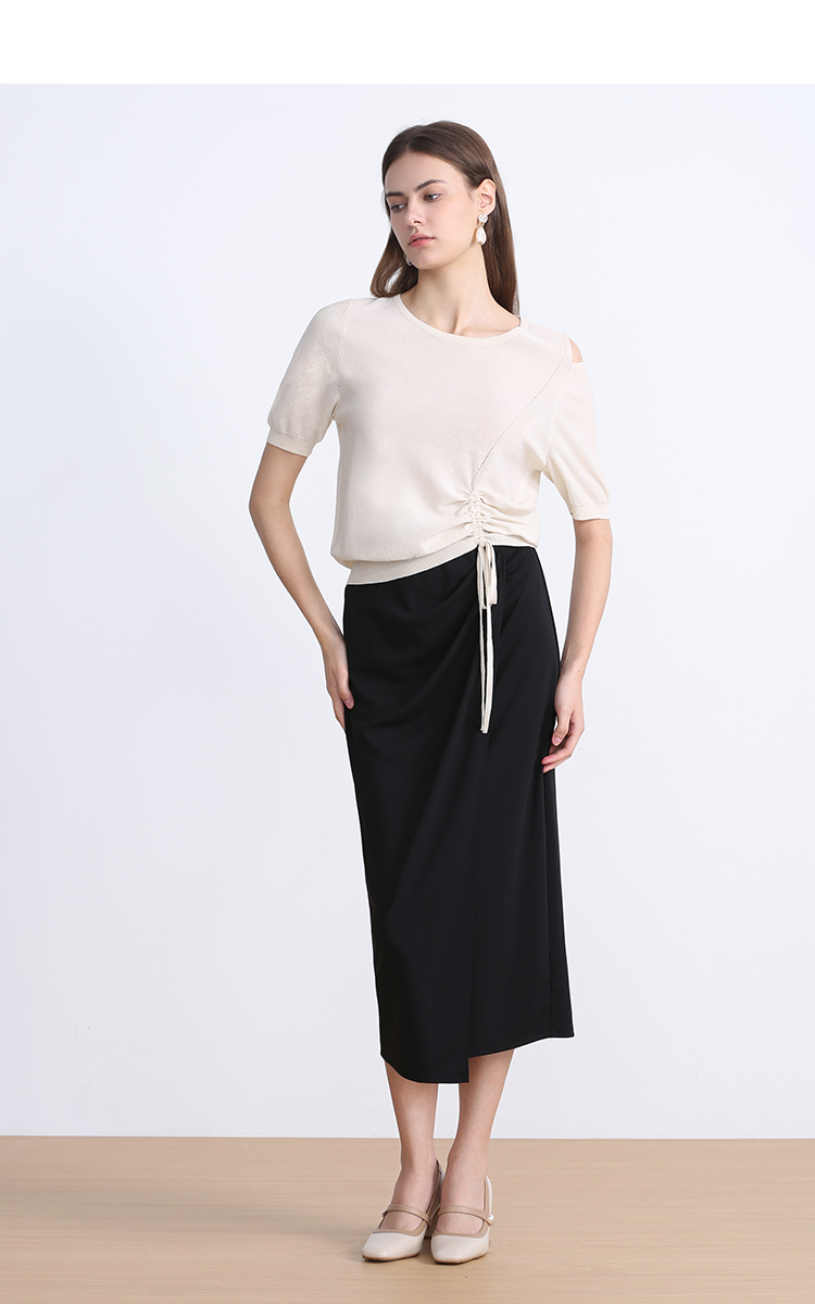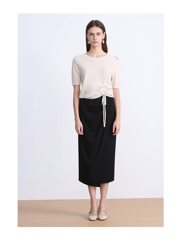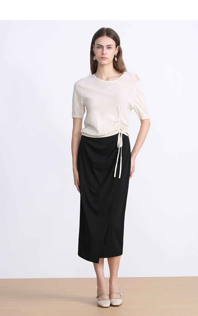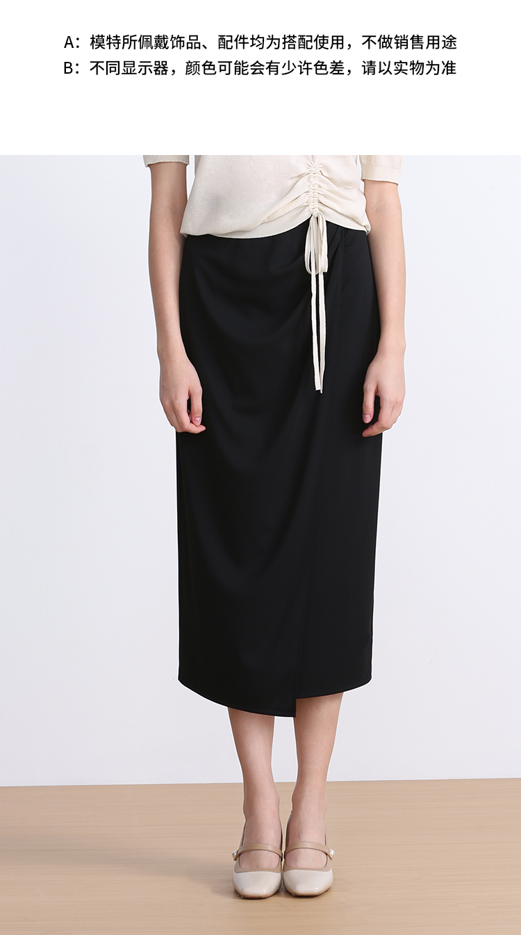EITIE爱特爱夏季新款气质高级感提褶高腰包臀半身裙7806518