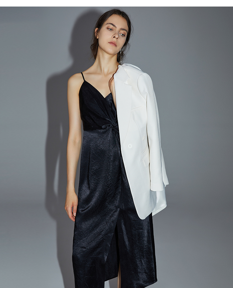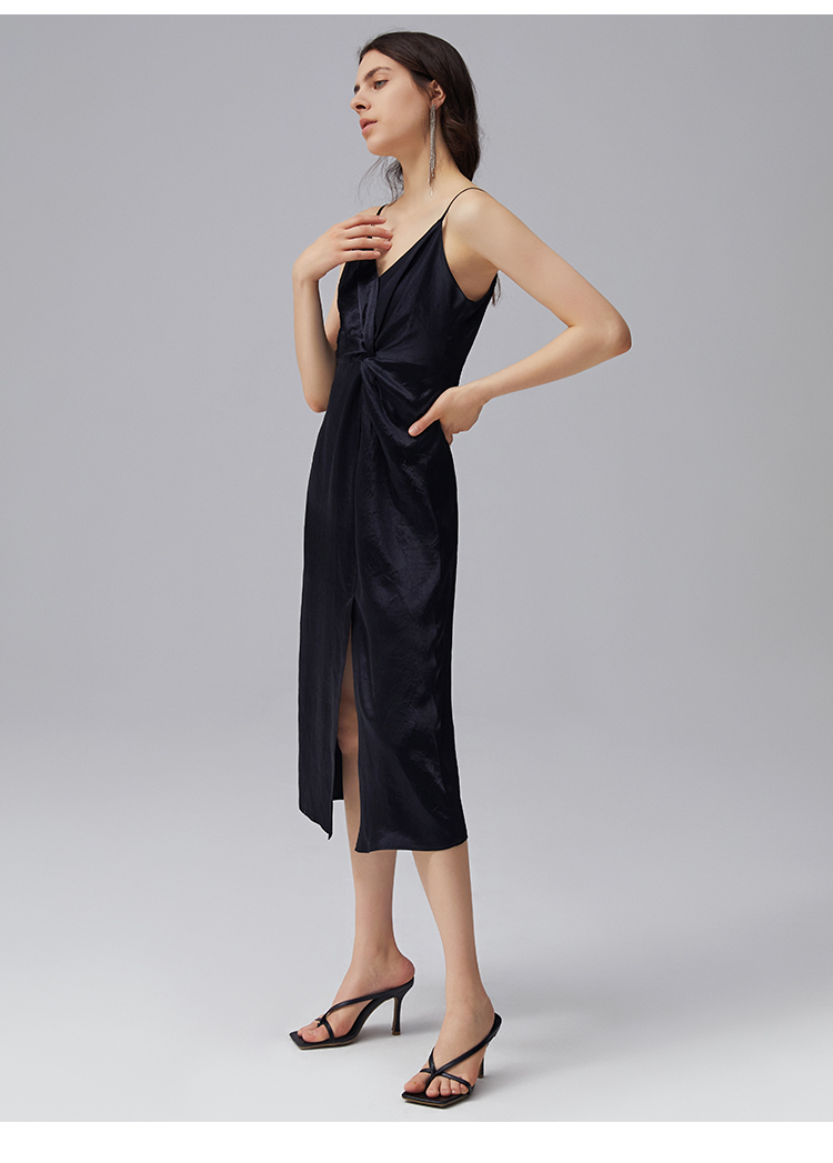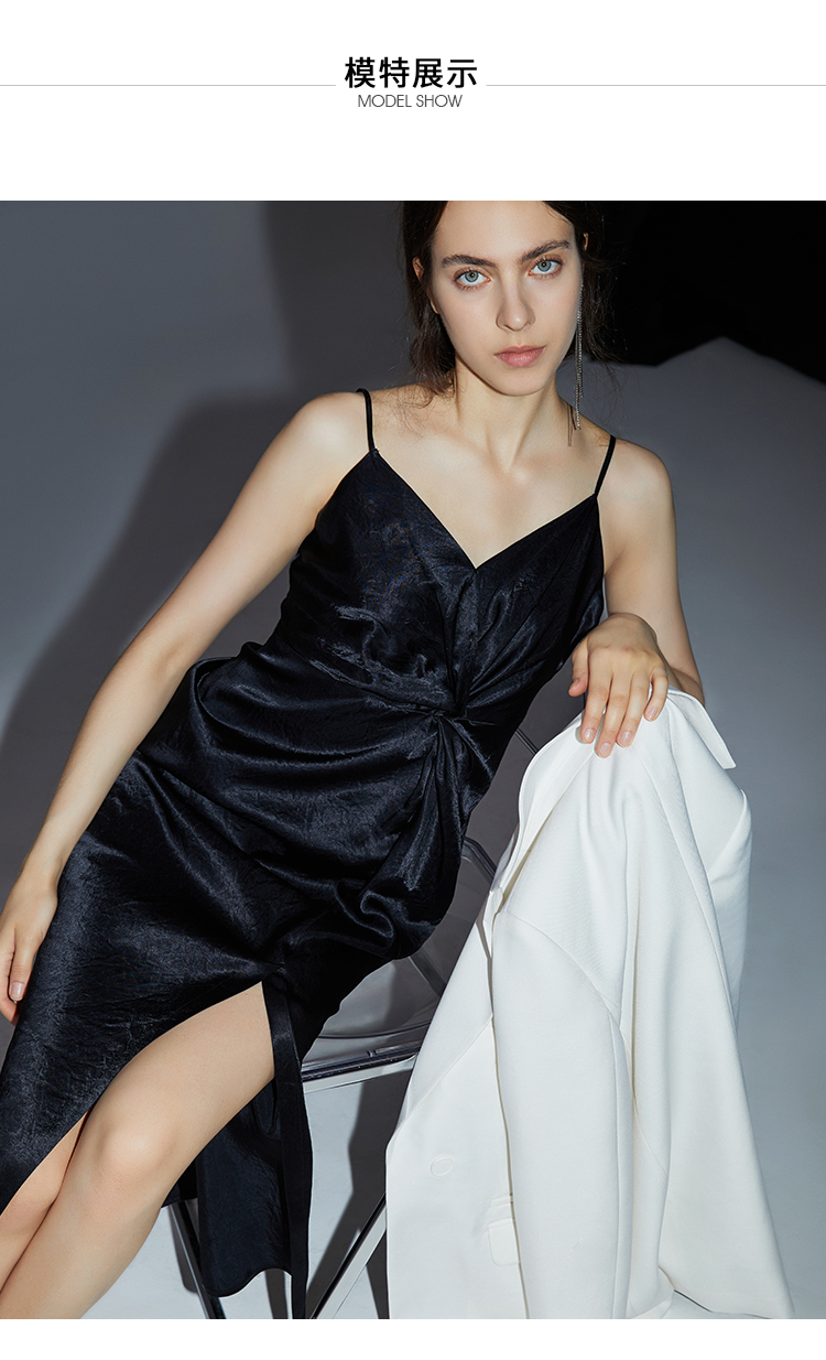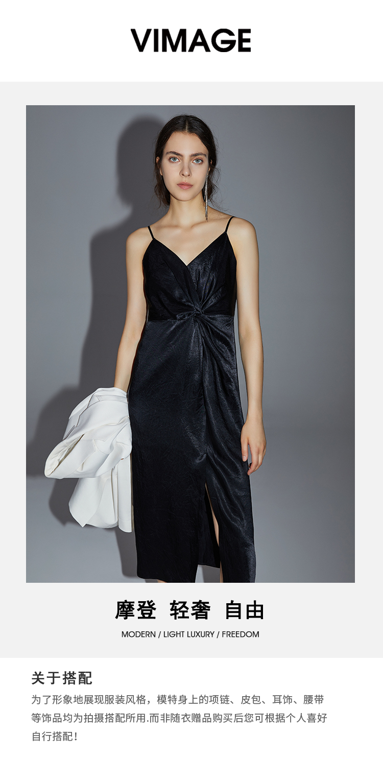 VIMAGE纬漫纪夏季新款时尚舒适性感吊带开叉连衣裙女裙V1507182