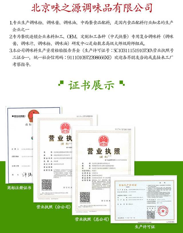 北京味之源调味品有限公司成立于2000年,是一家集研发、生产、销售为一体的现代化专业食品配料企业,是国内知名食品配料行业生产企业之一。公司坐落于美丽的首都-北京,注册资本1058万元,拥有占地2万平米