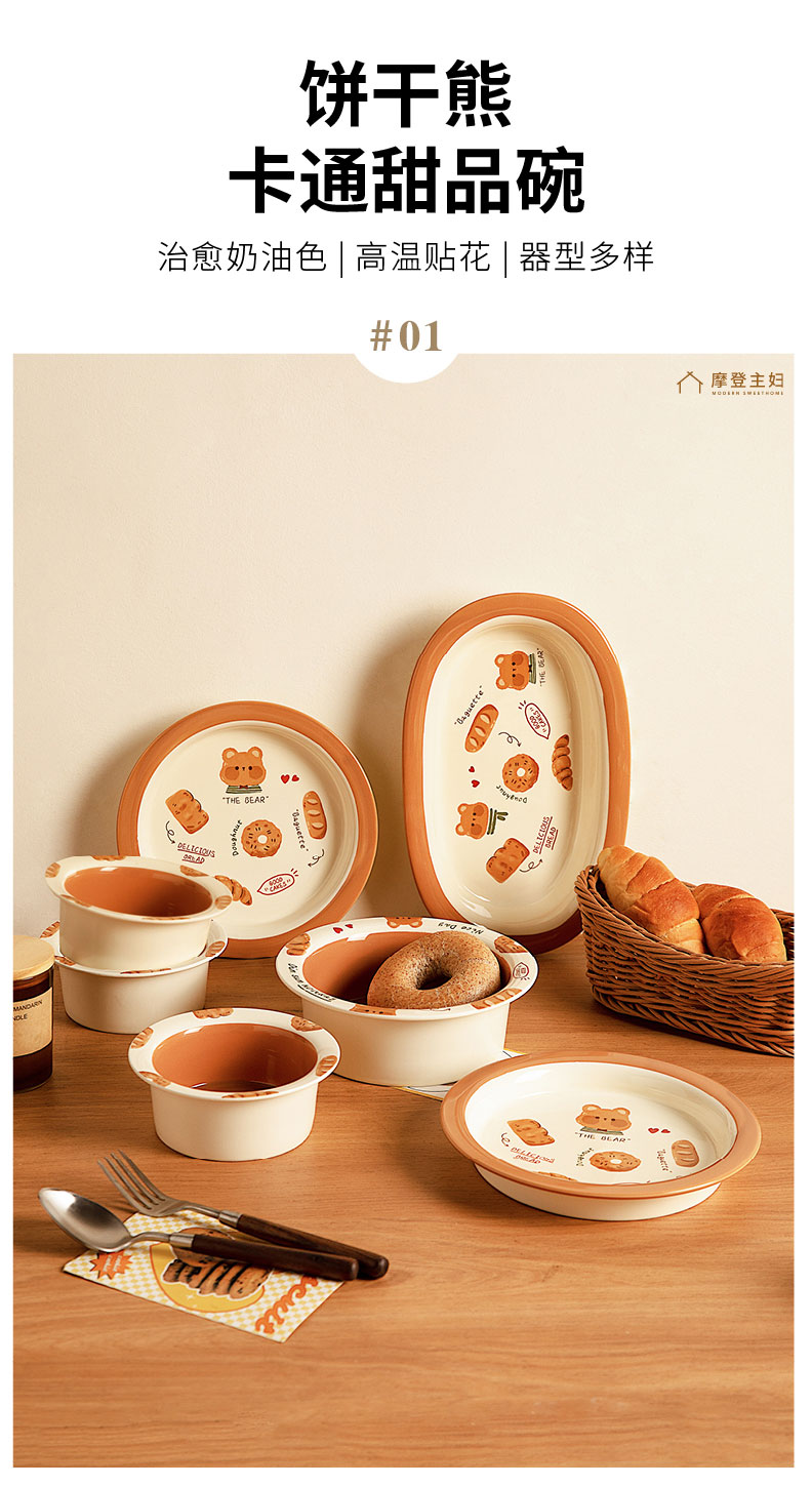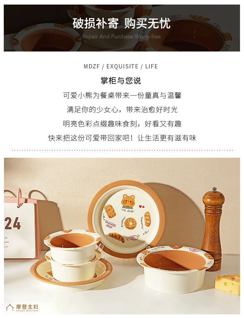 摩登主妇早餐盘子碗家用菜盘生日礼物碗具套装一人食可爱餐具礼盒