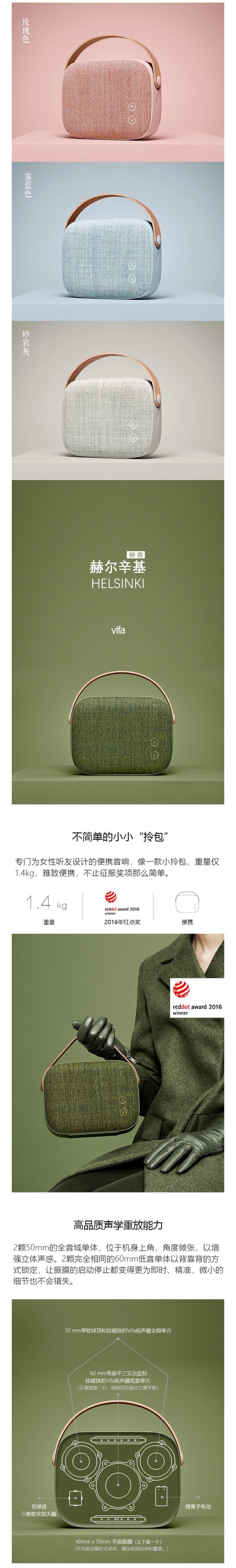 Vifa 赫尔辛基 北欧设计 无线蓝牙音箱 便携户外音箱 音响 家用音箱 迷你音箱 防水设计(赠天籁之音永久会员)