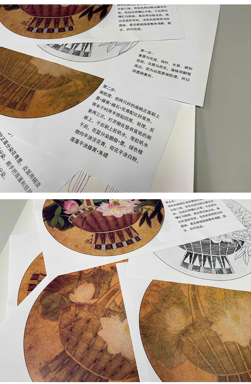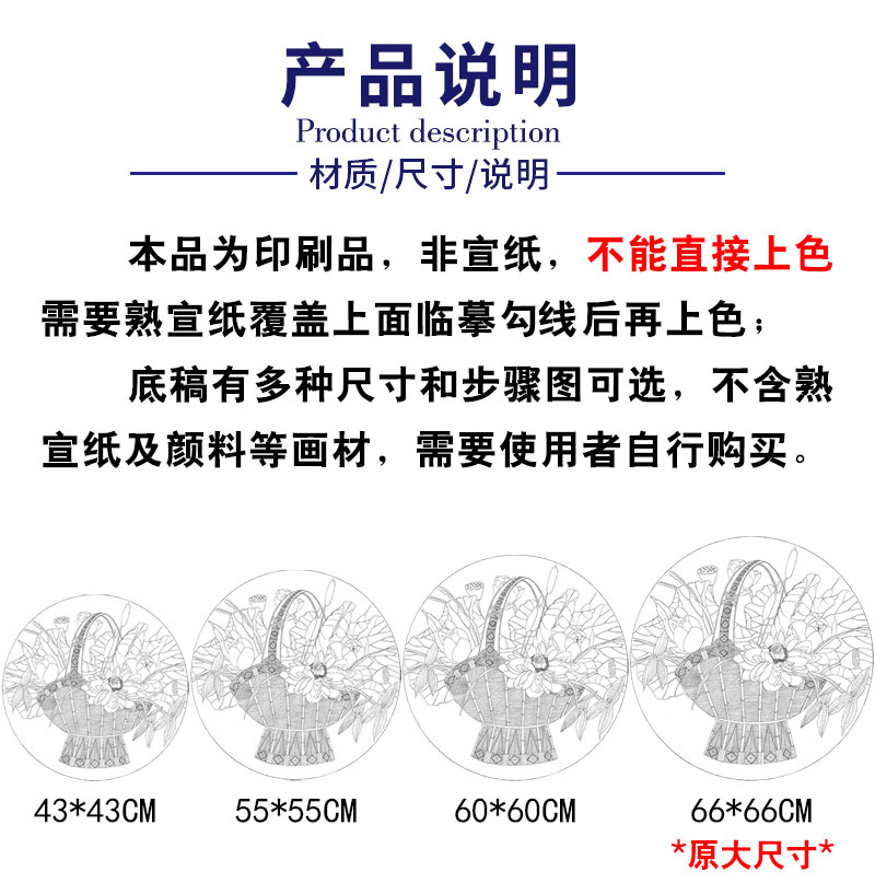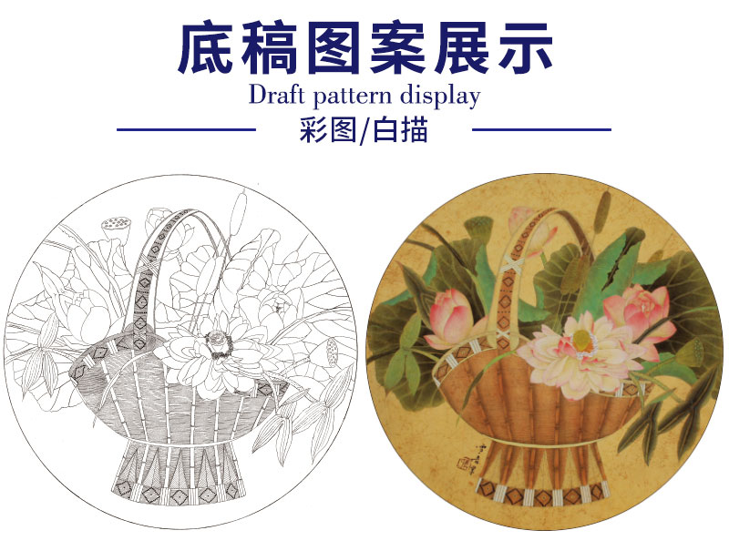 【有步骤】龚雪青工笔画白描底稿圆形小品《花篮图》初学者临摹花鸟线稿XQ80
