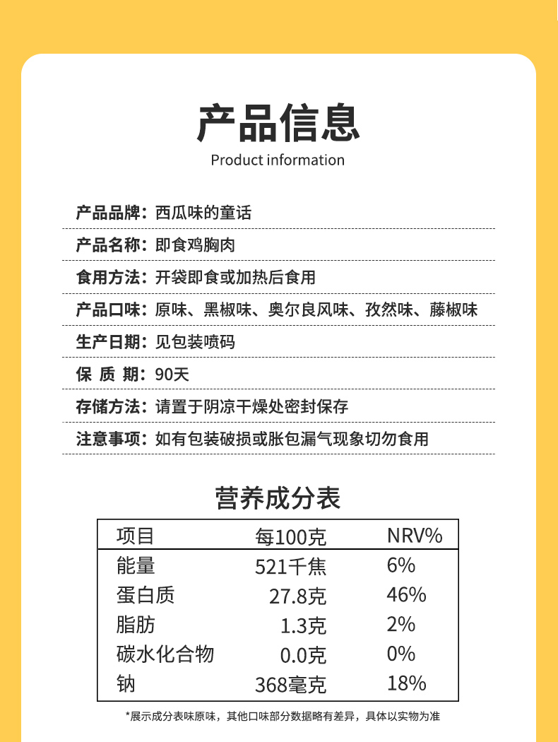 【西瓜味的童话】低脂 代餐鸡胸肉 开袋即食零食轻食高蛋白食品