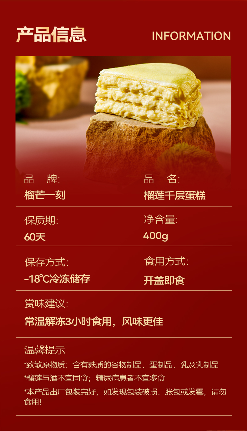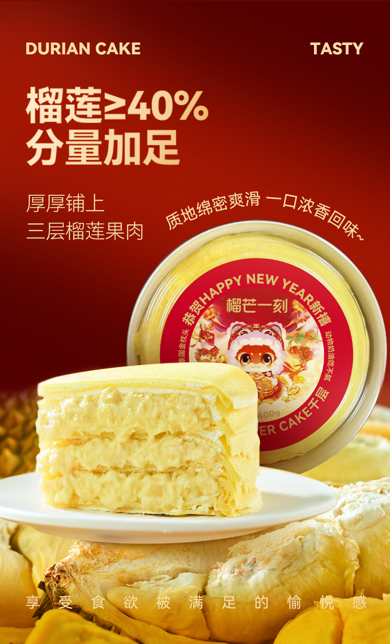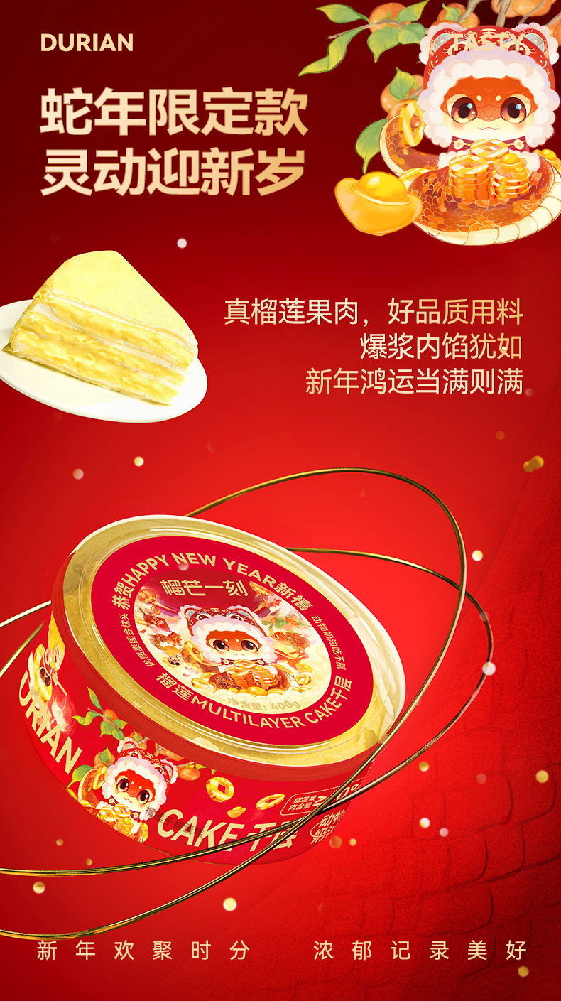 【榴芒一刻】榴莲千层蛇年限定生日蛋糕400g动物奶油新年款 买一送一