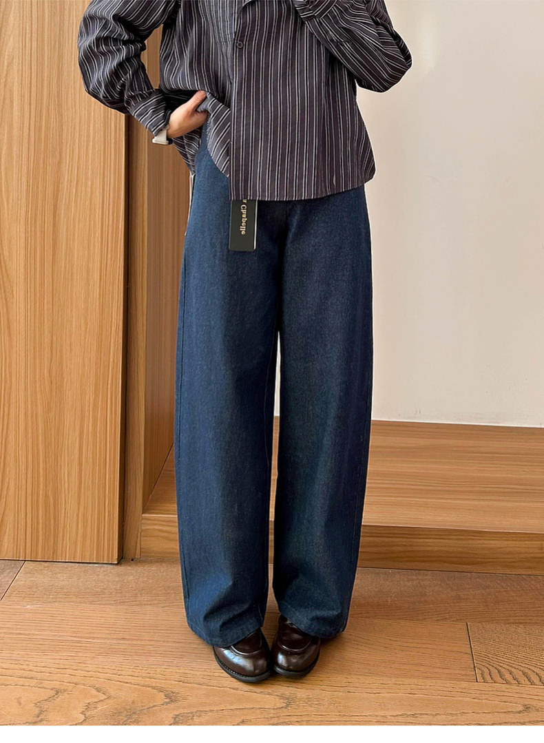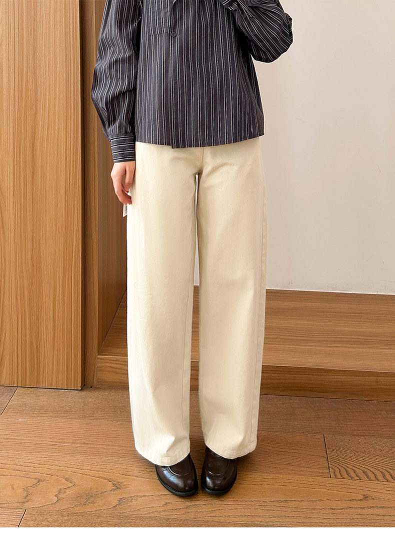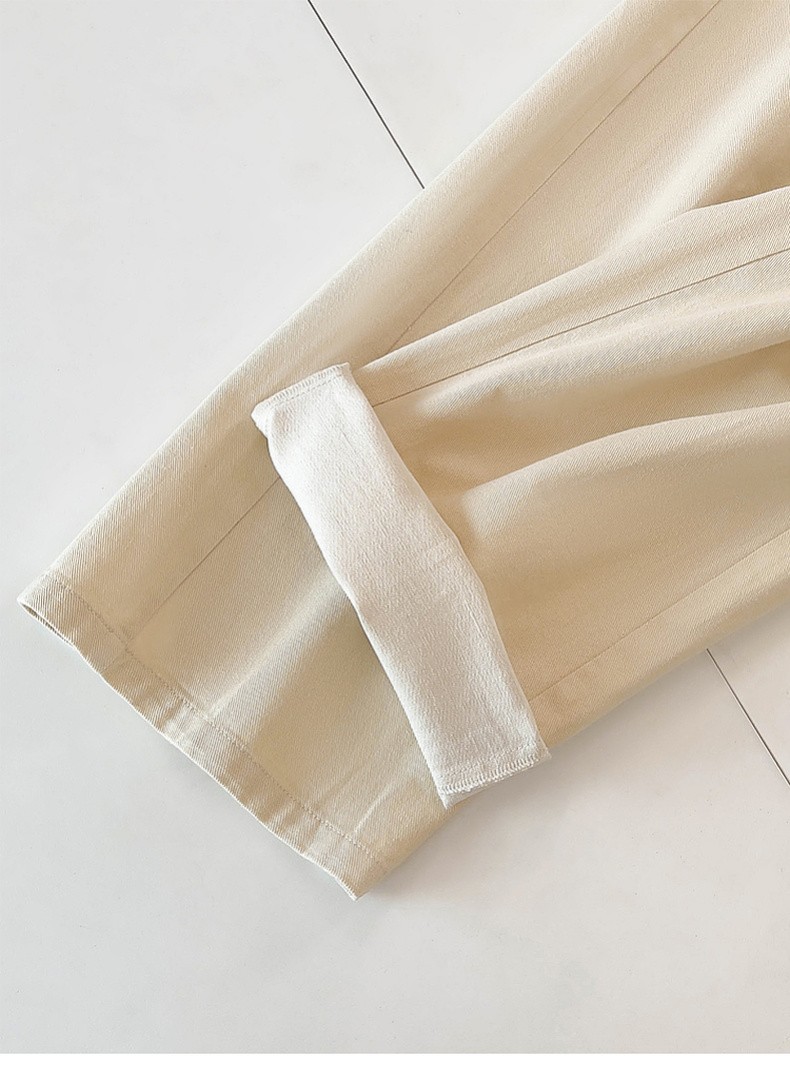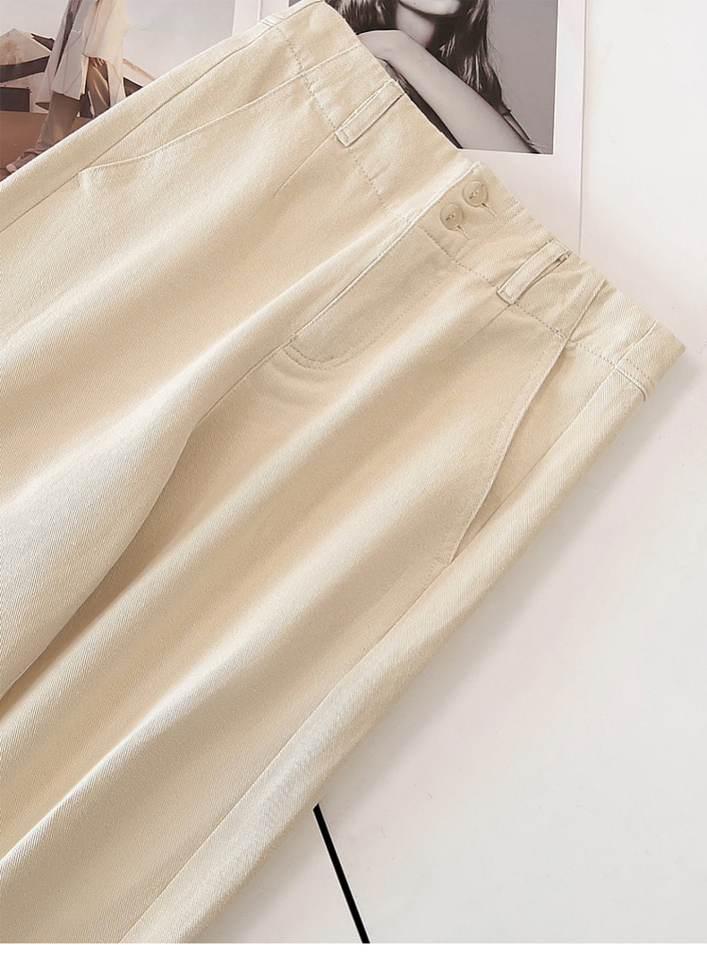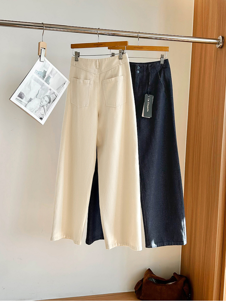 专柜实拍【重工水洗】拉夏贝尔/La Chapelle含亚麻挺括有型高腰两扣裤袢口袋休闲慵懒感显瘦牛仔裤