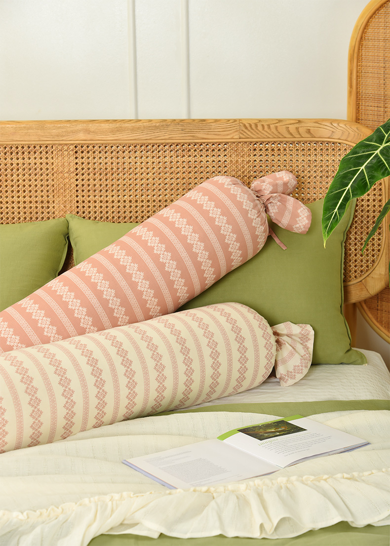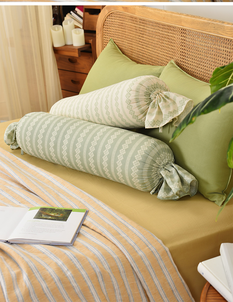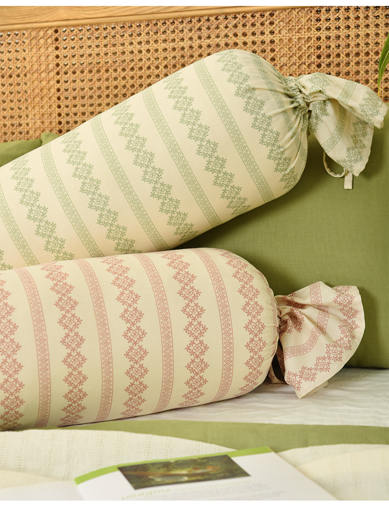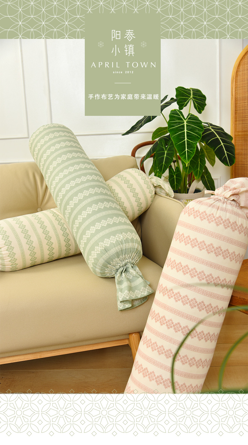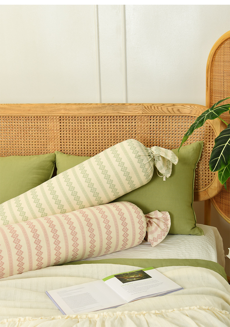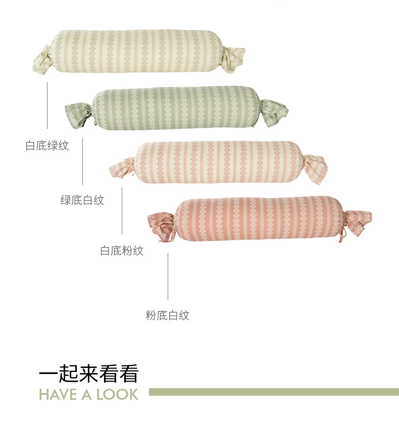 蕾丝条纹系列糖果枕抱枕睡觉荞麦壳枕头圆柱枕单人家用卡通可拆洗