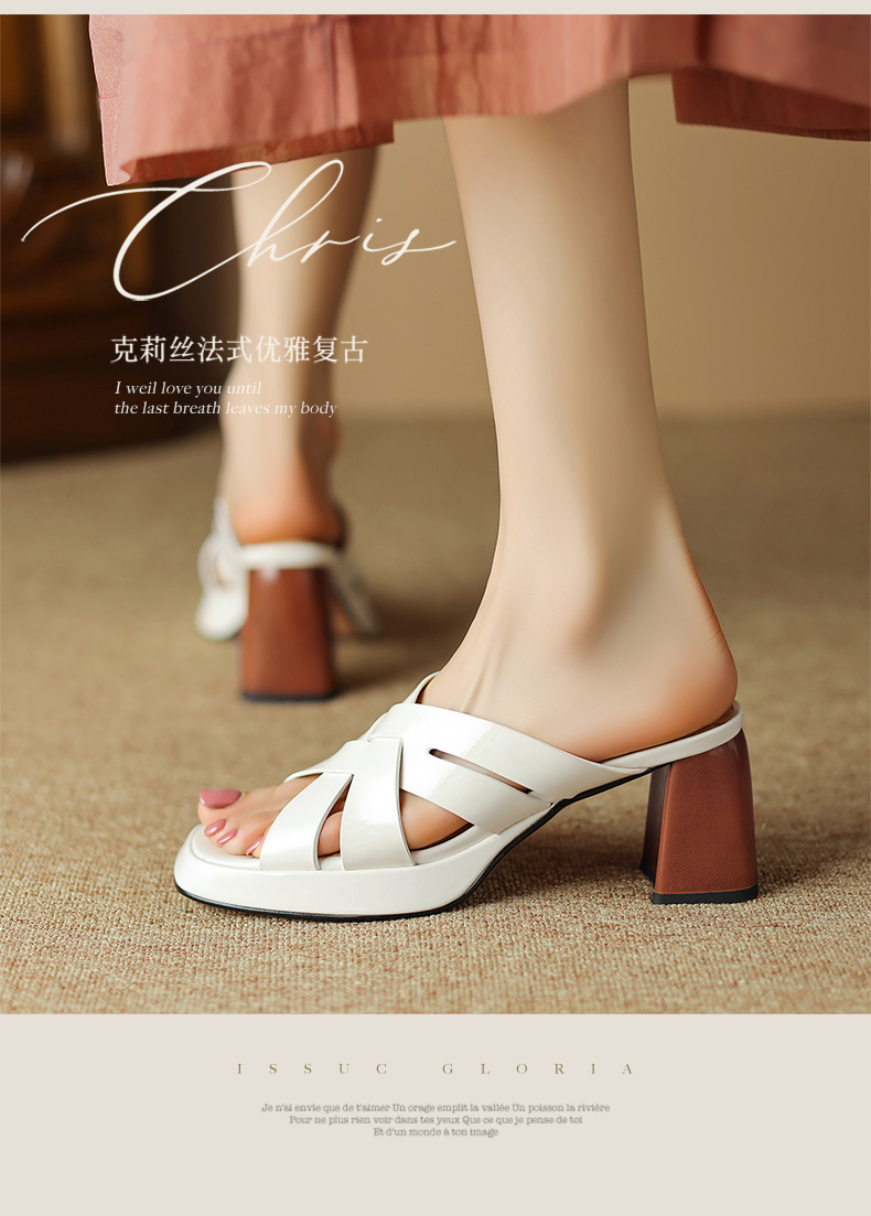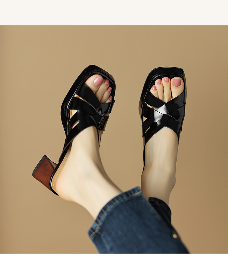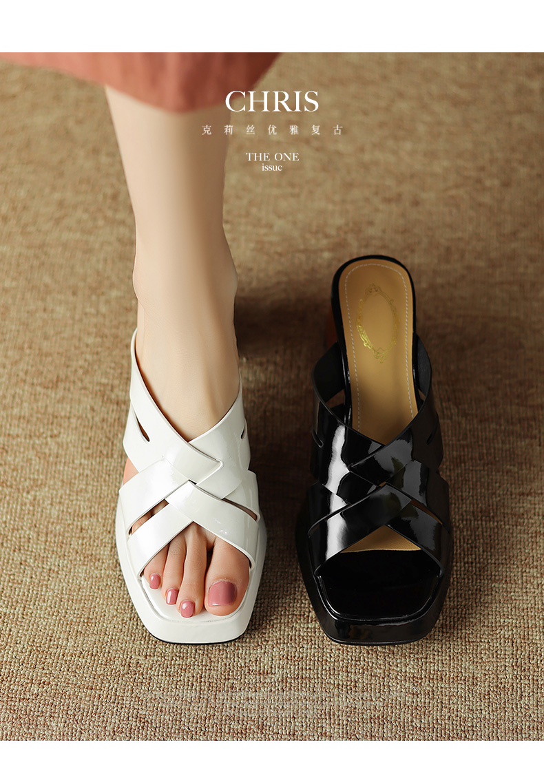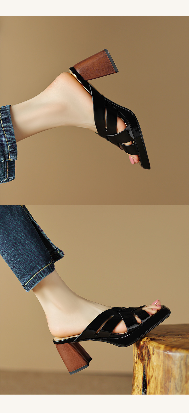 优雅气质,纯色牛漆皮凉拖DP-9552