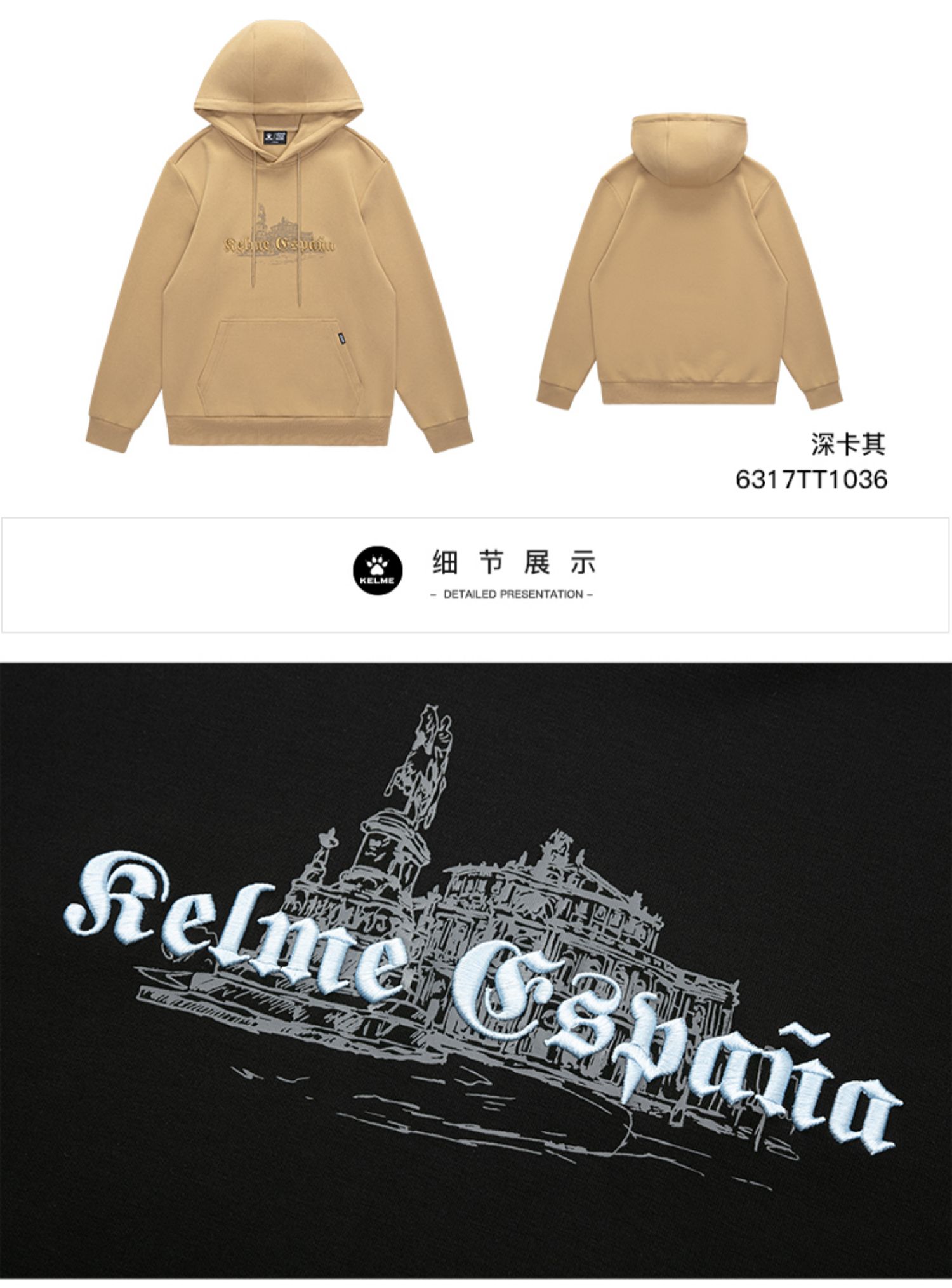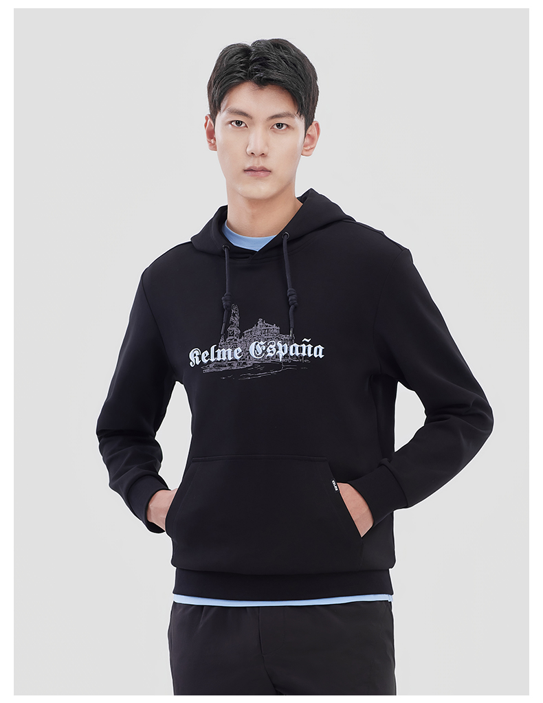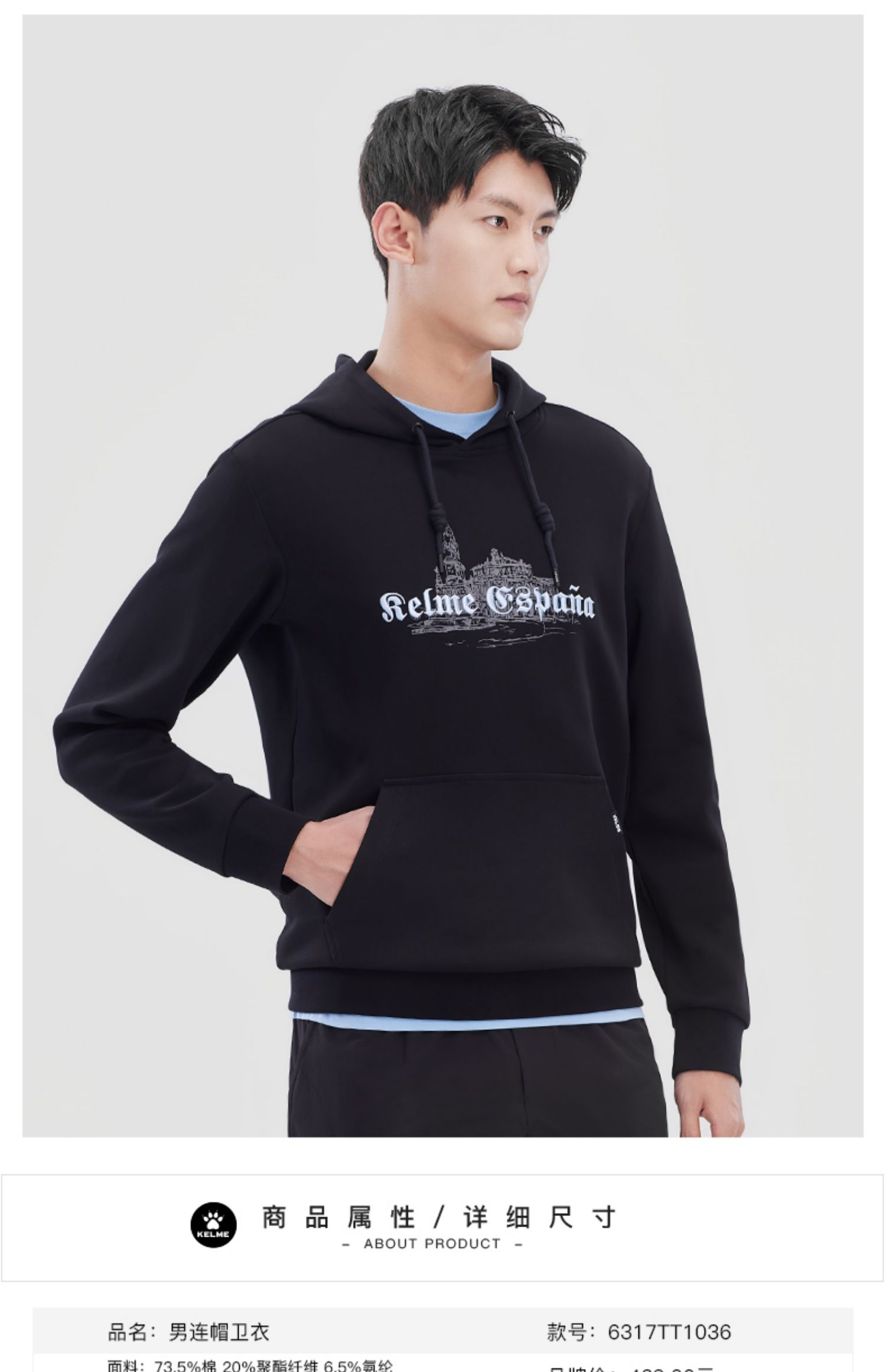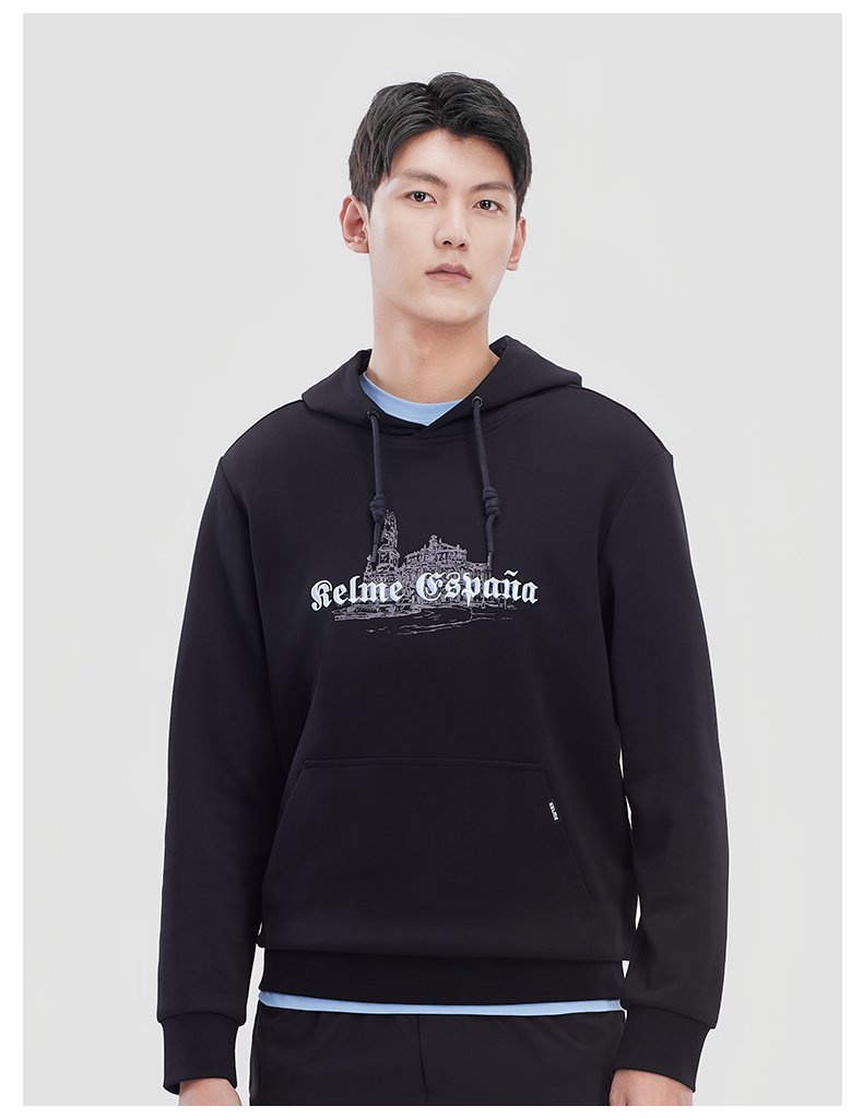 KELME卡尔美 男士休闲连帽卫衣运动长袖上衣刺绣套头衫