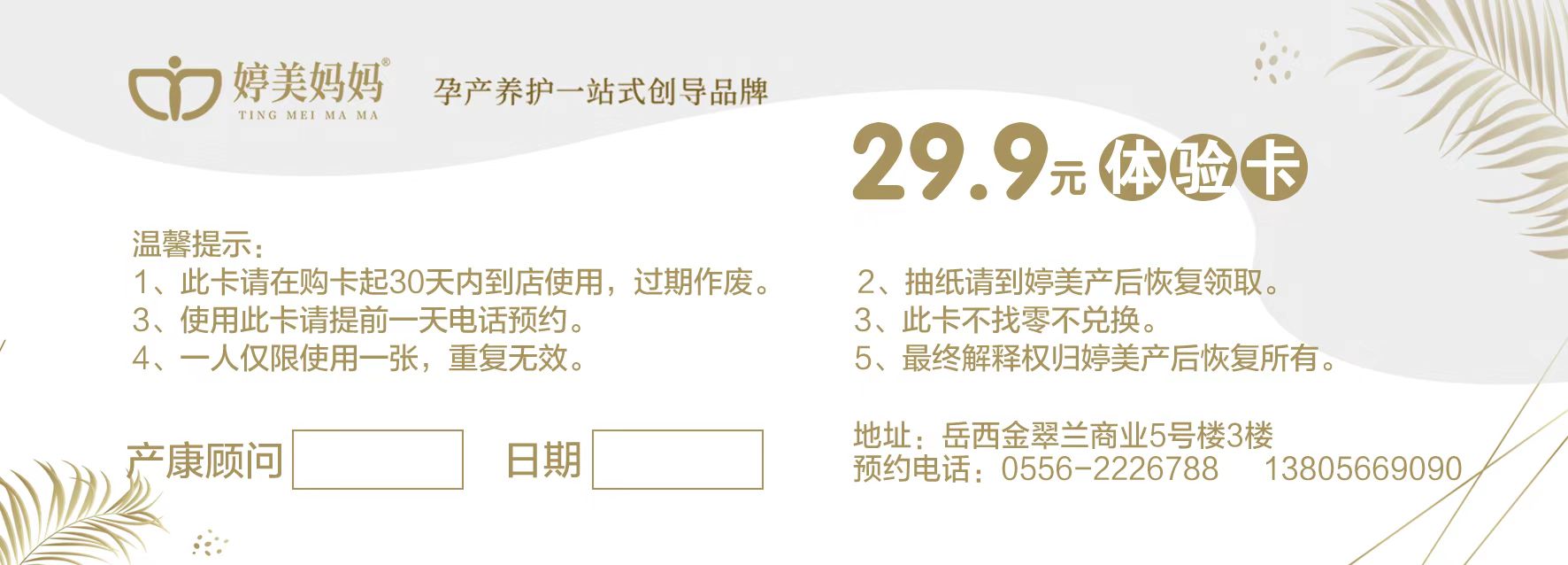 婷美妈妈*29.9元体验卡