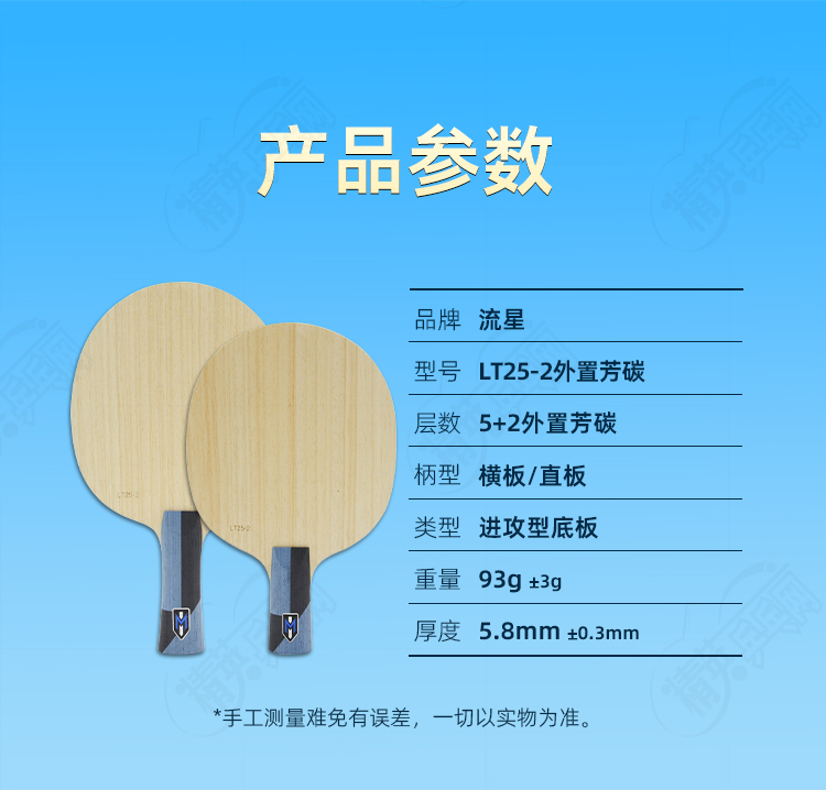 METEOR流星LT25-2乒乓球底板5+2外置芳碳快攻弧圈乒乓球拍底板